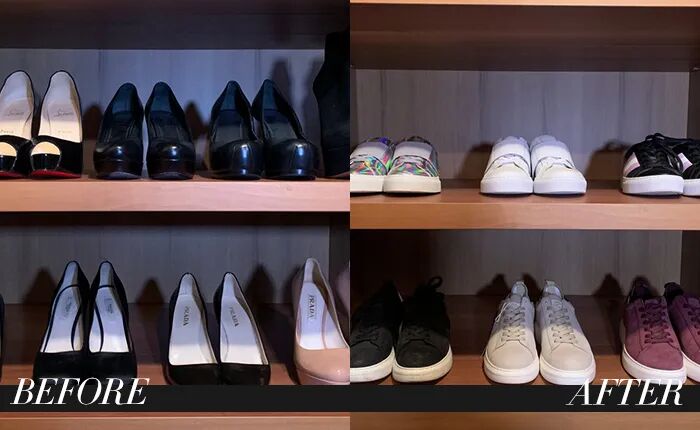 在2019年,Bobbi Brown接受了一项挑战——一年中只穿运动鞋。她把自己的高跟鞋捐掉,换成一鞋柜的运动鞋。