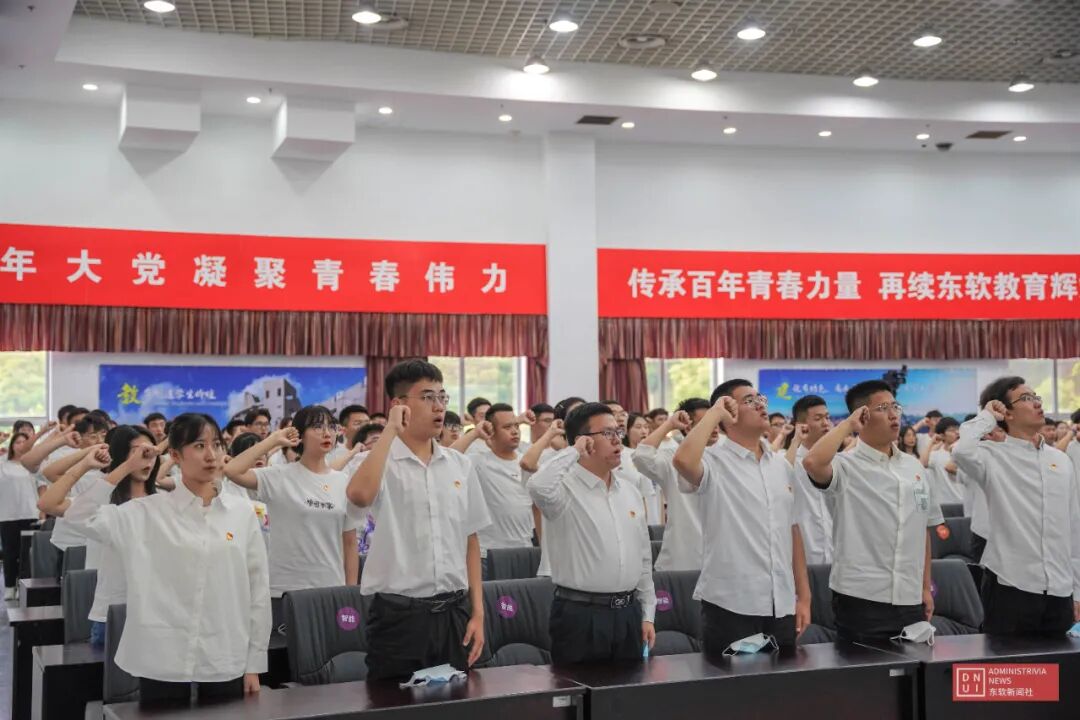 会上,参会同志首先观看了《颂歌献给党 奋斗正青春:大连东软信息学院庆祝中国共产党成立100周年MV》。李楠带领来自学校各院部的230余名师生新党员面向党旗庄严宣誓。新党员们身姿挺拔,誓言铮铮,表达了对党的忠心和为共产主义事业奋斗终生的红心。随后,信息与商务管理学院学生刘毓斌代表全体新发展党员发言,表达了新时代青年对党的承诺与决心。