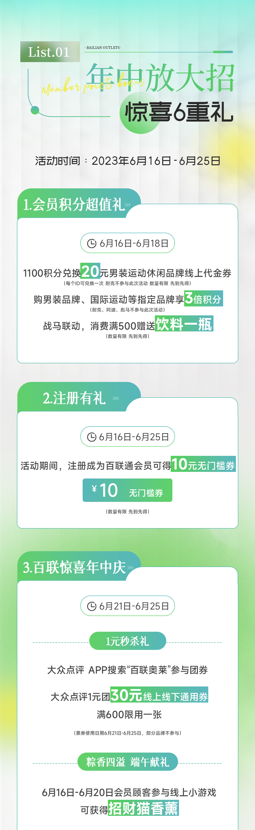 摘要:618年中庆盛大开启\x0d\x0a来百联海那城奥莱 6重好礼钜惠不等待