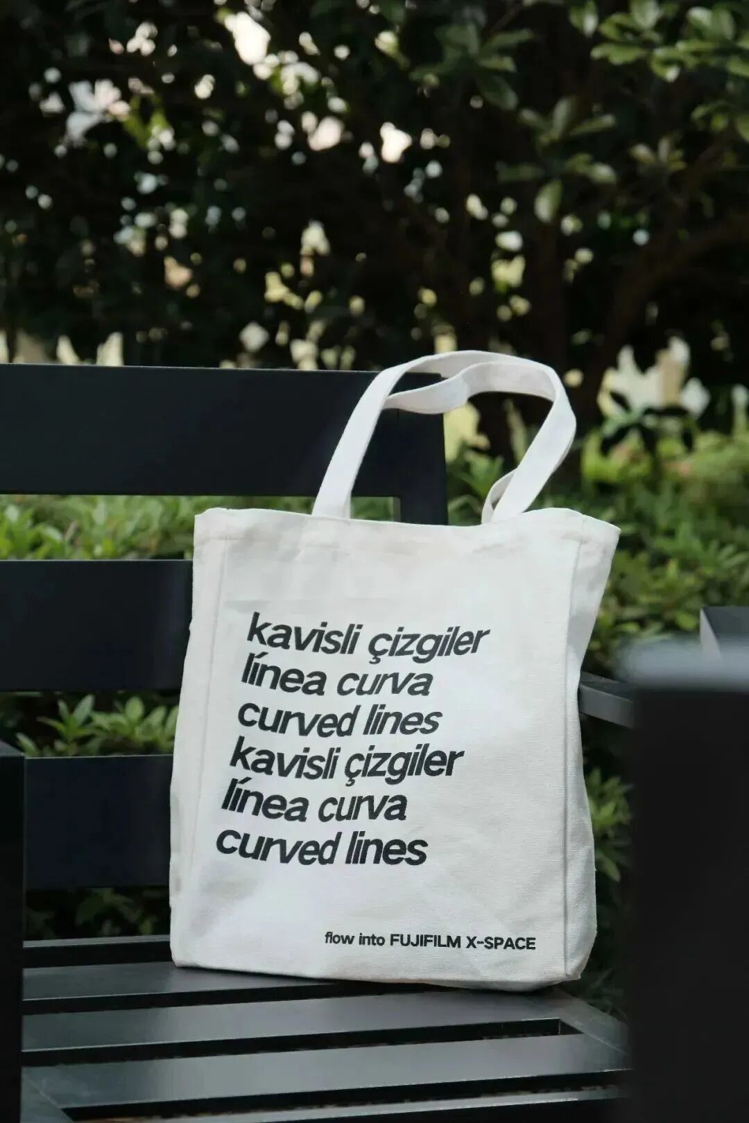 参与以上⬆️小红书互动,在北京·悦美术馆前台出示图文笔记页面,就有机会获得 无论蜿蜒曲折,我们终将合流相汇 / Curved Lines 展览纪念帆布袋。