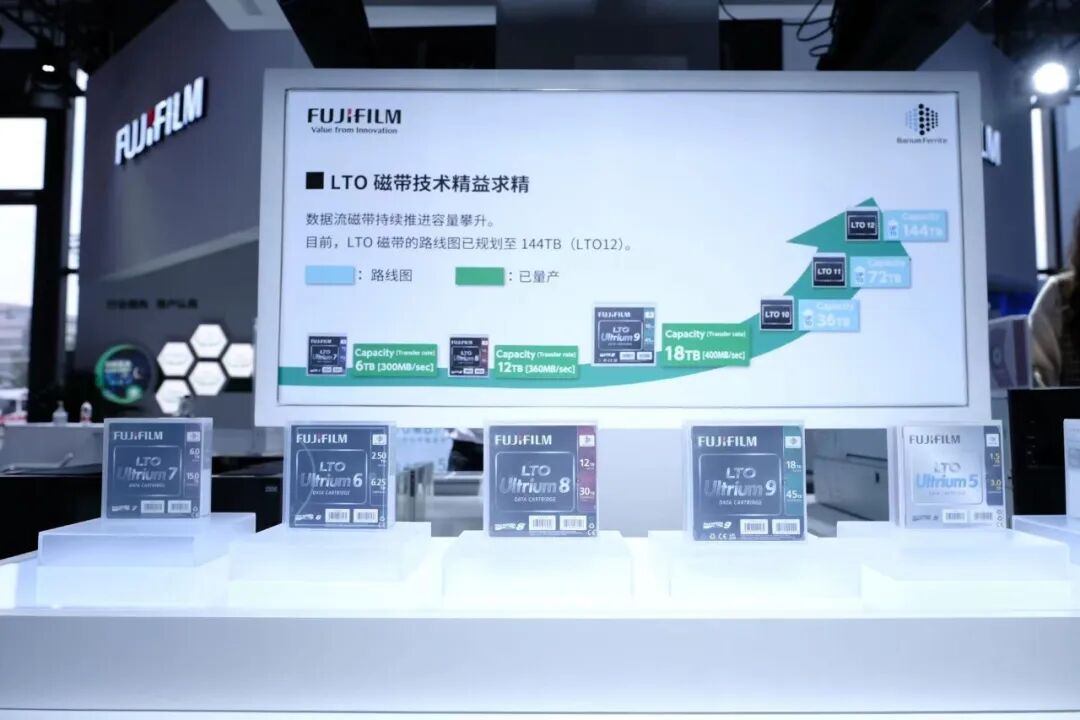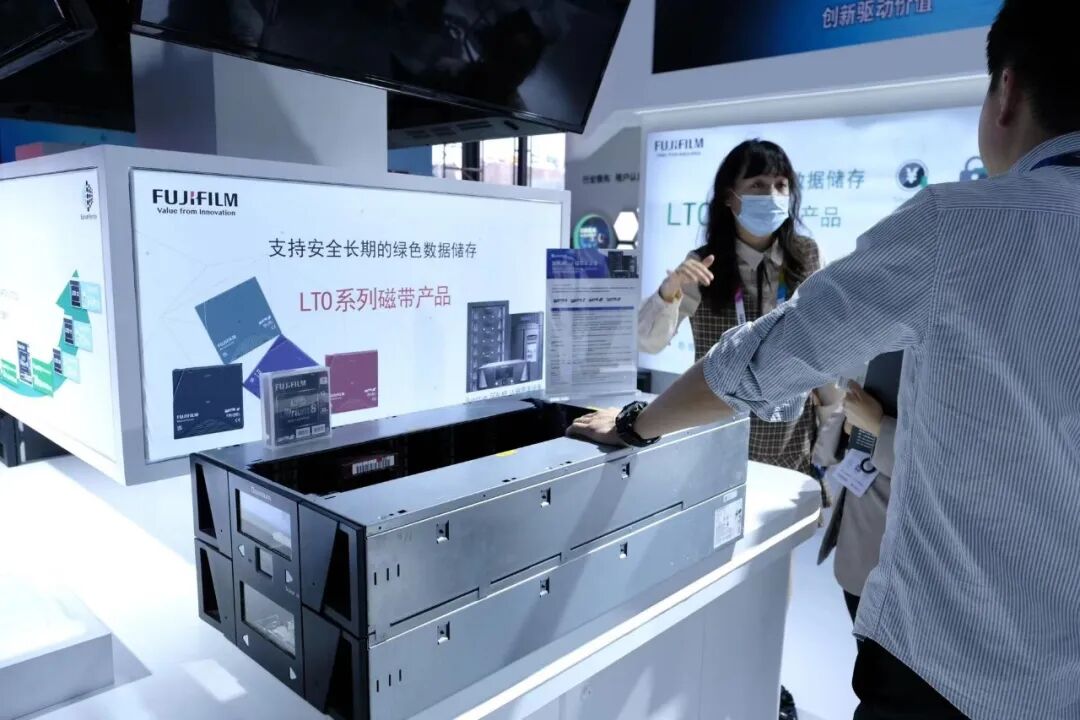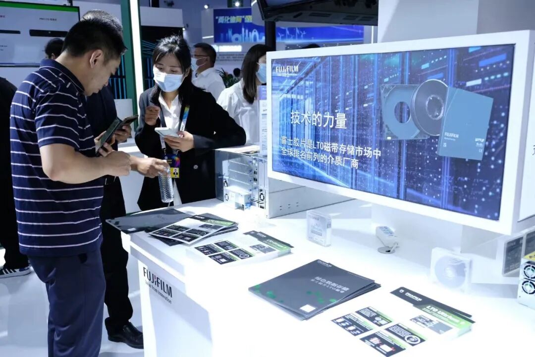 作为数博会的“老朋友”,今年富士胶片(中国)第三次参展,重点展示了旗下LTO9数据流磁带产品以及不同领域的解决方案,携手多家中国合作伙伴企业,向参观者演示数据产生-编辑-备份-存储-售后检测的完整磁带数据存储生态链。