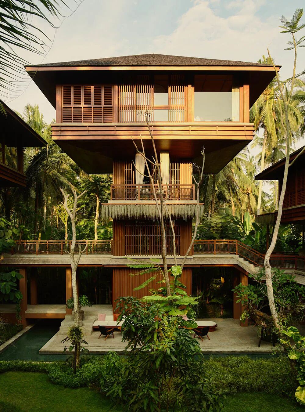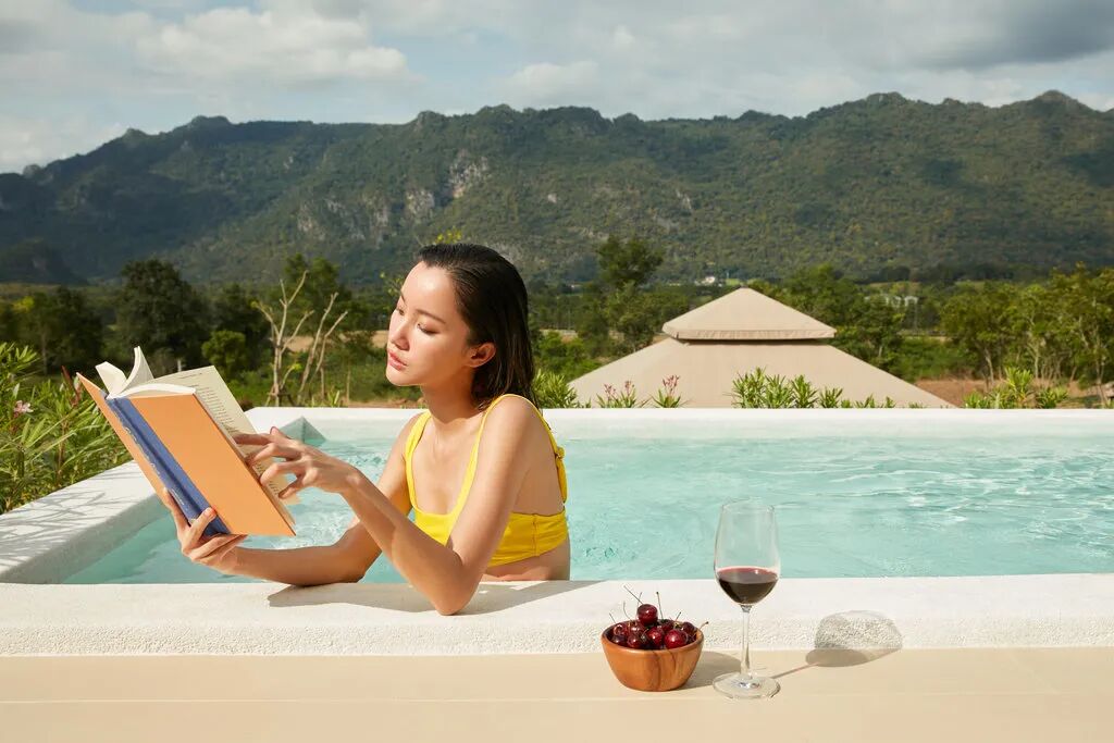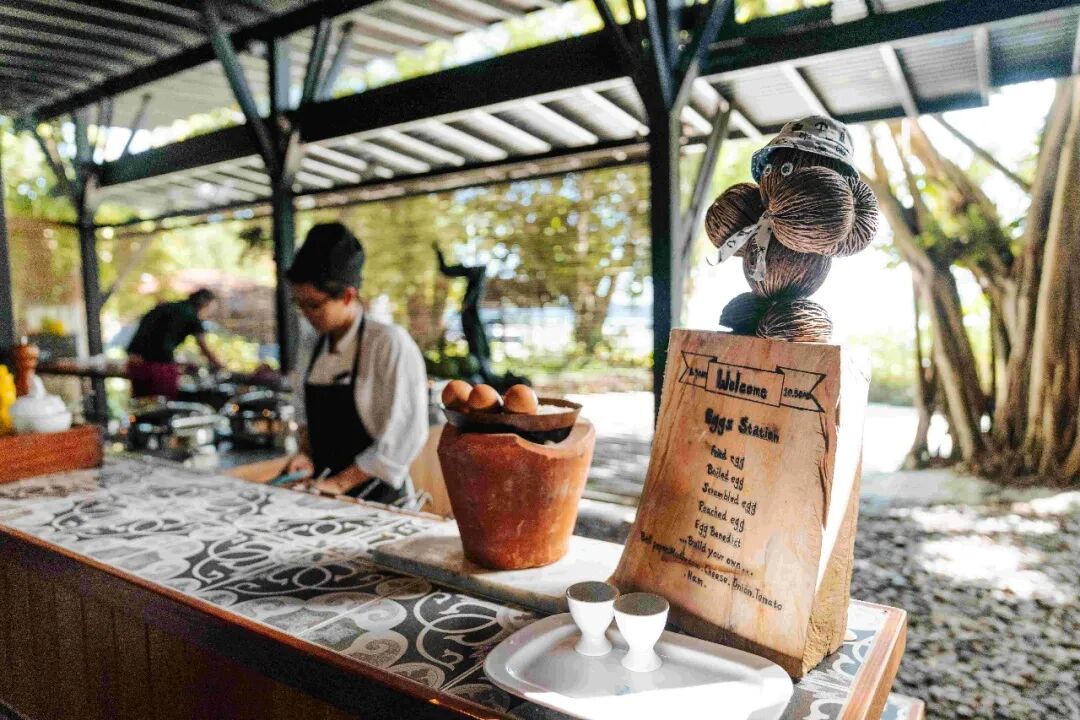从泰国传统文化中汲取灵感,尽掩在茂密丛林山坡上深色柚木草顶别墅和私人泳池,白色沙滩上慵懒的豆袋和鸡尾酒,是经典悠闲的野奢假日画面。