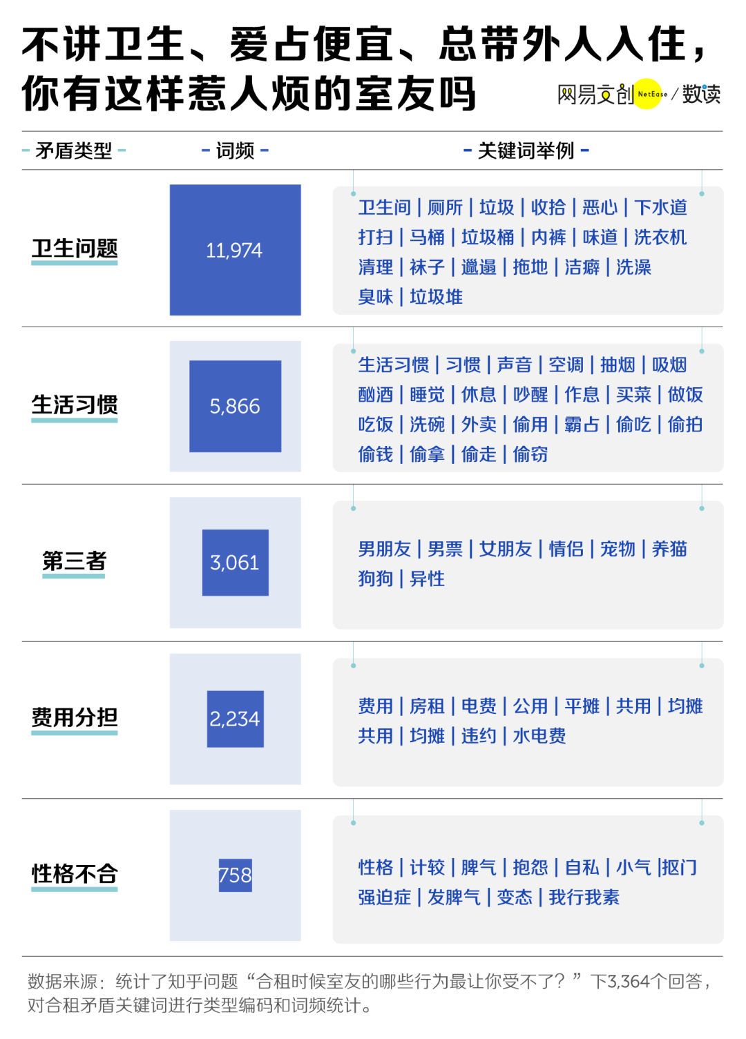 在知乎“合租时室友的哪些行为最让你受不了?”的问题下,群情激奋的知友们贡献了 3000 多条回答,仿佛是吐槽大会办了一期室友专场。