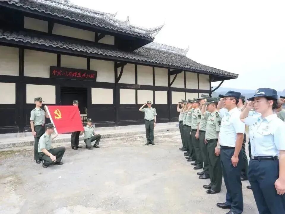 战旗美如画,英雄血染红。“七一”前夕,南江县人武部组织官兵来到双流镇红色教育基地与双流镇党员干部一起追寻红军当年的足迹,同上一堂特殊党课。“这条路就是当年红军走过的路,当时山林很大,山路杂草丛生、崎岖难行……”在红军山洞博物馆,全体党员认真聆听讲解员讲述红军在这里的战斗故事,瞻仰红军老照片、老物件,在重温红军艰辛奋斗历史中感悟“跟着党走”的坚定信仰。