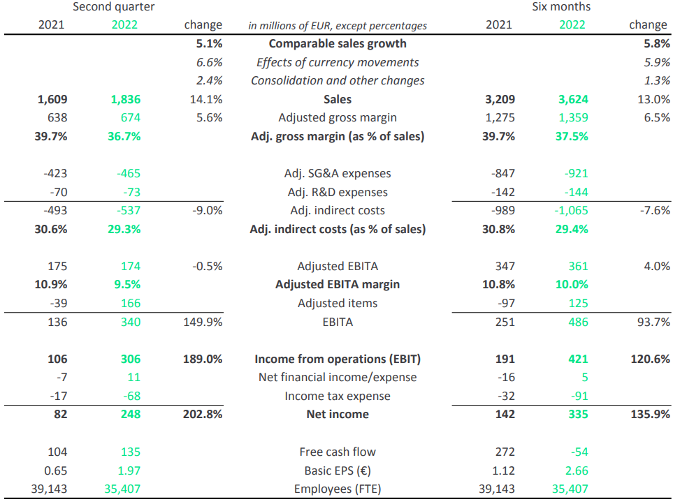 7月29日,昕诺飞公布了Q2及上半年财报。报告期内,销售额、净利润、息税前利润EBIT等数据相比去年同期皆有所提升,但毛利率及调整后息税摊销前利润率同比小幅下降。具体来看,昕诺飞Q2实现销售额18.36亿欧元(约合人民币126.55亿元),名义增长14.1%,可比销售增长5.1%,其中,基于LED的产品销售占比从去年同期的82%提高到今年的84%,LED渗透率进一步提升。Q2净利润表现亮眼,达2.48亿欧元(约合人民币17.09亿元),相比去年同期的8200万欧元大幅增长了202.8%;调整后毛利为6.74亿欧元,同比增长5.6%,但毛利率小幅下降至36.7%;EBIT为3.06亿欧元,同比也显著增长了189%;调整后息税摊销前利润率则微幅下降至9.5%;自由现金流为1.35亿欧元,去年同期是1.04亿欧元。累计上半年,昕诺飞实现销售额36.24亿欧元(约合人民币249.79亿元),名义增长13%,可比销售增长5.8%;净利润为3.35亿欧元(约合人民币23.09亿元),同比增长135.9%;调整后毛利为13.59亿欧元,同比增长6.5%;调整后毛利率微幅下降至为37.5%;EBIT为4.21亿欧元,同比增长120.6%;调整后息税摊销前利润率为10%。自由现金流为-5400万欧元,而去年同期是2.72亿欧元。昕诺飞表示,尽管中国疫情封城措施、俄乌冲突、消费需求疲弱等不利因素对经营产生一些影响,但专业照明业务表现强劲,最终仍带动公司整体实现了积极稳健的增长,这也表明昕诺飞持续向智能互联照明领域转型的成效渐显。然而,受汇率变动及通货膨胀压力等因素的影响,毛利率和调整后的息税摊销前利润率有所下跌。按业务来看销售收入构成,数字解决方案、数字产品及传统产品三大业务在Q2延续了Q1的发展趋势,前两大板块销售收入仍保持增长,传统产品销售收入则依旧下滑。数字解决方案业务Q2实现销售额10.42亿欧元,名义增长24.4%,可比销售增长11.6%;累计上半年销售额为20.22亿欧元,名义增长24%,可比销售增长14.1%,增长动能来自专业解决方案,此部分业务在大部分区域市场都有出色的表现。数字产品业务Q2实现销售额5.98亿欧元,名义增长8%,可比销售增长2.6%;累计上半年销售额为11.98亿欧元,名义增长6.2%,可比销售增长1.4%。报告期内,数字产品中LED电子产品需求强劲,但因消费需求疲软,消费者相关的互联照明产品销售额不理想。传统产品业务Q2实现销售额1.93亿欧元,名义下降8%,可比销售增长率为-13.8%;累计上半年销售额为3.94亿欧元,名义下降10.5%,可比销售增长率为-14.5%。昕诺飞指出,尽管Q2产品价格显著提高,但也不足以抵消能源成本骤升对公司的成本和需求造成的压力,叠加货币汇率的负面影响,传统产品业绩有所下滑。从区域市场来看销售构成,欧美地区及全球其他地区在报告期内均有积极的表现。其中,销售额占比最大的美洲市场在Q2实现销售额7.47亿欧元,可比销售增长率和名义增长率分别是8%、20%;累计上半年销售额为14.5亿欧元,可比销售增长率和名义增长率分别是9.1%、19.7%。Q2、上半年增幅均为所有地区市场中最高水平。昕诺飞表示,在美洲市场,Cooper Lighting业务贡献了稳健的销售收入。另值得一提的是,在北美地区,植物照明市场驱动力十足,也备受昕诺飞等LED照明大厂的关注。而昕诺飞已于5月完成对植物照明灯具厂Fluence的收购,上半年这笔交易已经开始对昕诺飞产生积极影响,下半年随着北美医用大麻需求的持续增长,Fluence的销售收入贡献值可望提升。展望全年,基于专业照明业务的持续增长动能及稳健增长的订单,昕诺飞对全年可比销售增长保持原有的预期,即3-6%的增长。但由于外部环境仍面临挑战,公司下调了全年调整后的息税摊销前利润率,预计为11.0-11.4%。此外,供应链中断、供应商交期延长等问题仍未缓解,也将对其自由现金流产生影响,因此,昕诺飞将自由现金流占销售额的比重调整为5%-7%。目前,昕诺飞正在积极采取应对措施,预期下半年对利润率的不利影响有望缓解。昕诺飞表示,只要供应商交货期缩短,并且库存水平不再提高,公司的现金流能力将恢复正常,自由现金流占销售额的比重就有望恢复到8%以上的目标水平。另外,虽然上半年由于疫情封城影响,昕诺飞在中国市场的经营情况受到影响,但长远来看,昕诺飞仍看好并重视中国市场。就在7月28日,昕诺飞宣布在沪地区总部升级为跨国公司亚太区总部,全面提升管理和创新能级,在一定程度上意味着昕诺飞往后将更好地开拓相关市场的专业照明、消费照明等业务,并助力实现“双碳”目标。