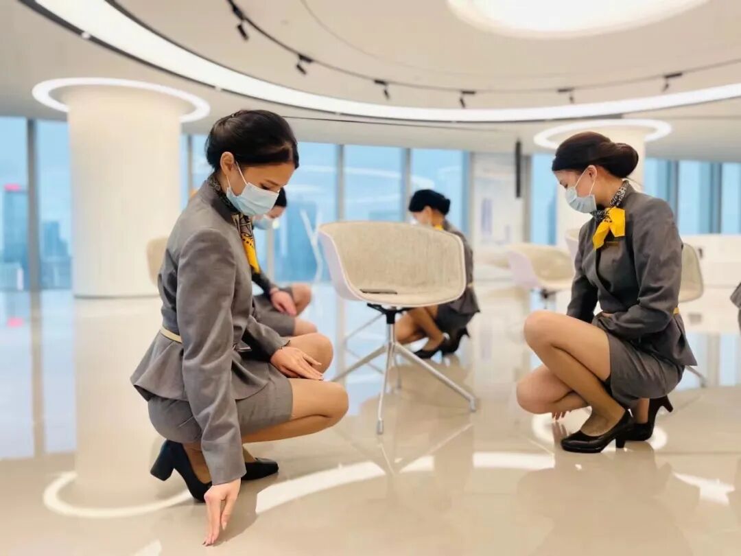 通过常态化的训练,可视化的讲解,多次开展仪容仪表、商务礼仪等专项培训:优美蹲姿递接、15°鞠躬礼待、3米微笑原则、3分钟内茶水服务.....举止从容、极尽标准的服务动作,不断提高您的感官满意度,以臻心淬炼一寸一厘。