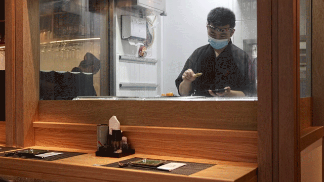 透过明档的橱窗,你可以超近距离观赏到师傅精湛的炭烤手艺,第一时间享用美味!