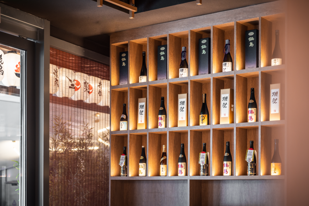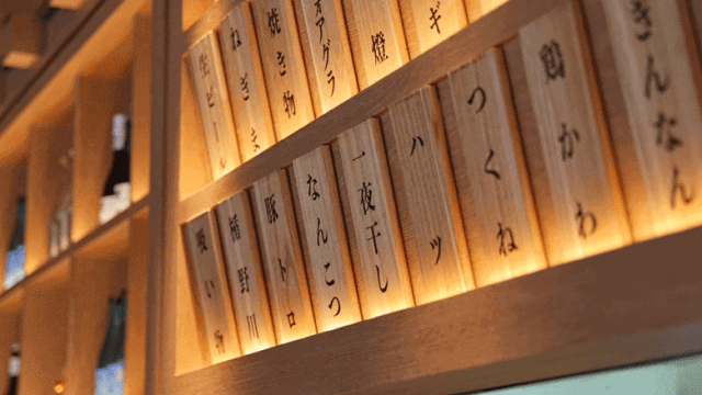 陈列其间的日式清酒,也变成了一道风景,在吧台旁小酌一杯,搭配几串烧鸟,瞬间卸下整天的疲惫。