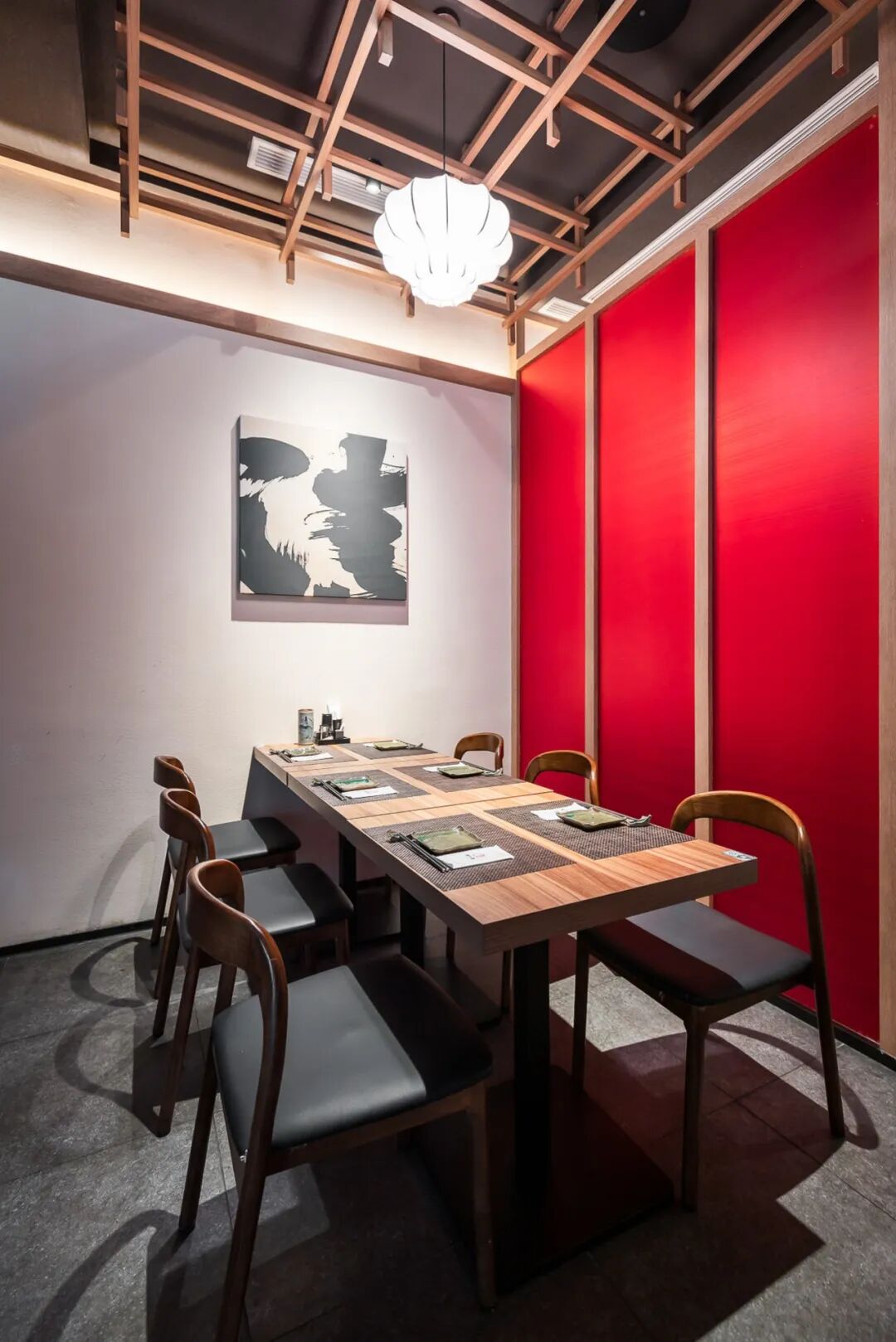 整个空间被完美划分成三大区域,适合一人食的吧台、好友相聚的大厅、风情各异的包房,无论一人食还是约三五好友都再合适不过。
