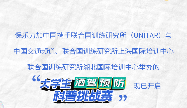 摘要:联合国训练研究所携手保乐力加中国发起大学生酒驾预防科普挑战赛