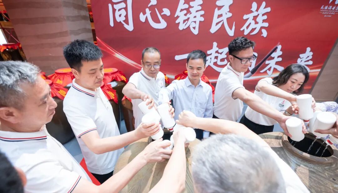 时间是一切伟大事物的标尺,是从物的价值到精神价值的美学进化。以时间为伴,久久为功,是民族求实的信仰。乔迁封坛大典由求实执行总裁周品铮主持,现场朗诵《民族酒赋》,掌声经久不息。各嘉宾及出席员工代表均手系红绸,依次将各自手中的一瓶酒注入大坛中,并将红绸系在长绳上,注酒结束,以签名红布加盖封存,寓意民族人攻坚品质、团结一心。求实品牌董事、经销商悉数出席。