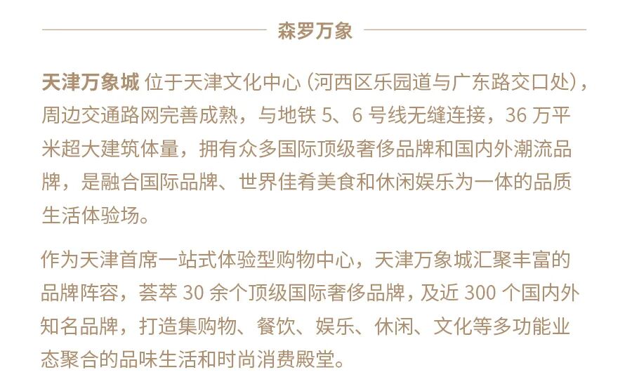 文章内容来源于公众号:天津万象城,点此可查看原文,内容版权归相关企业所有,本网站仅供交流学习。若涉及版权问题或存在侵权情况,请及时与我们联系,我们将第一时间进行删除处理。