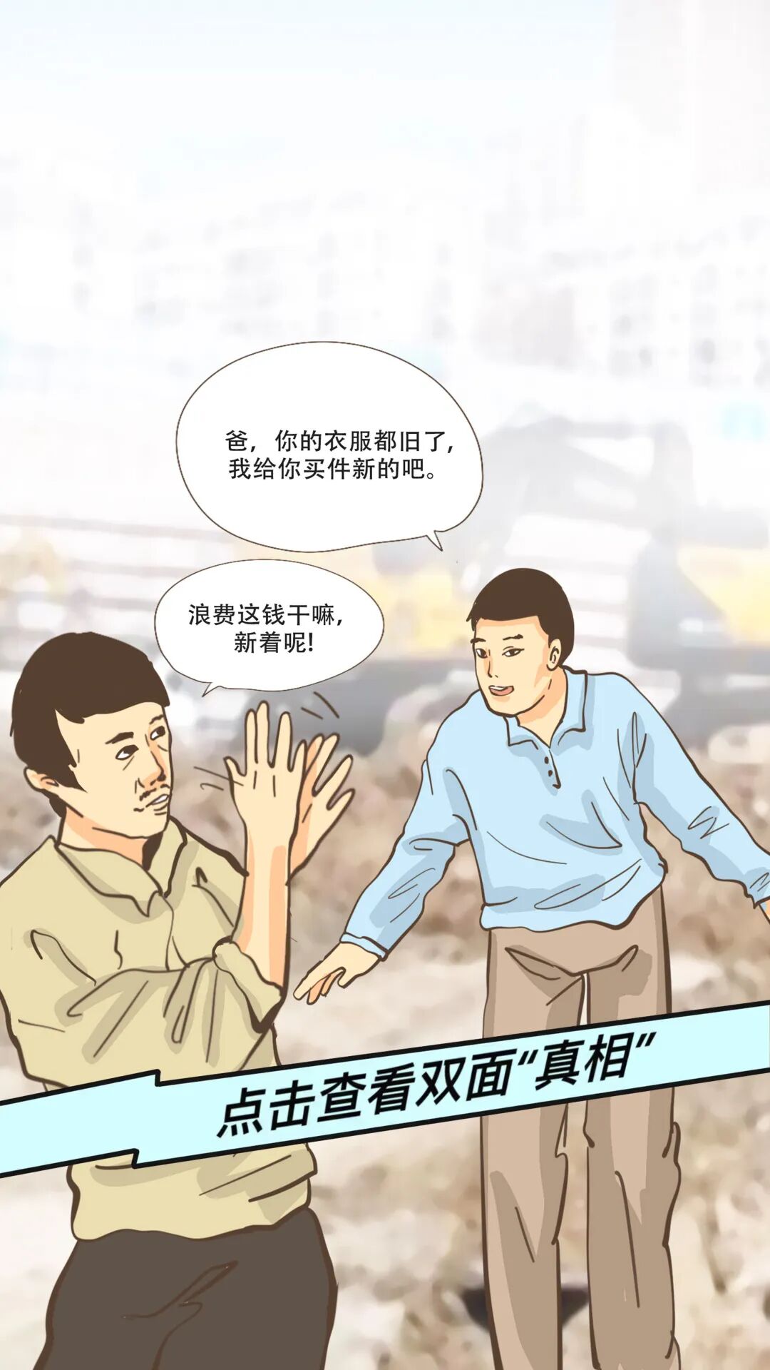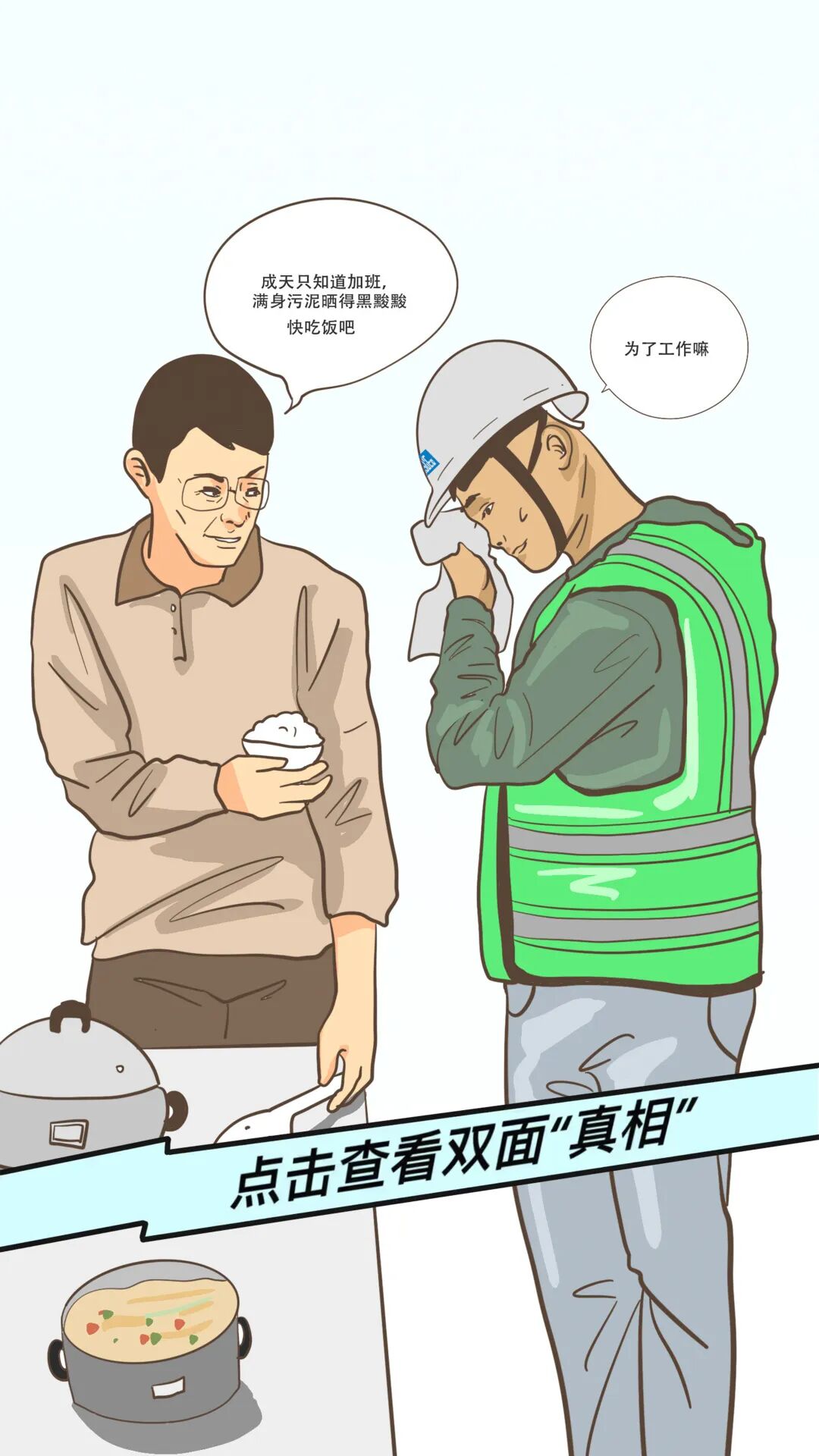 他是工地现场挥汗如雨、满身泥泞的父亲