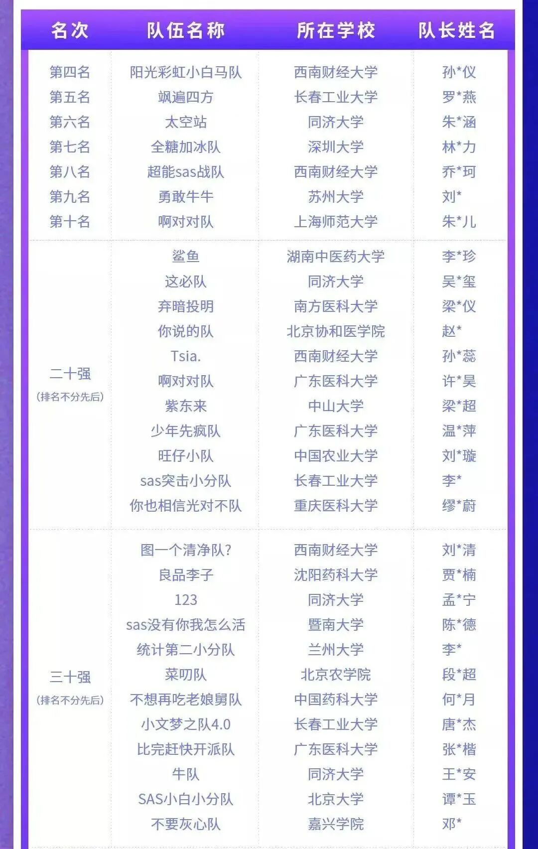 以下为30强名单