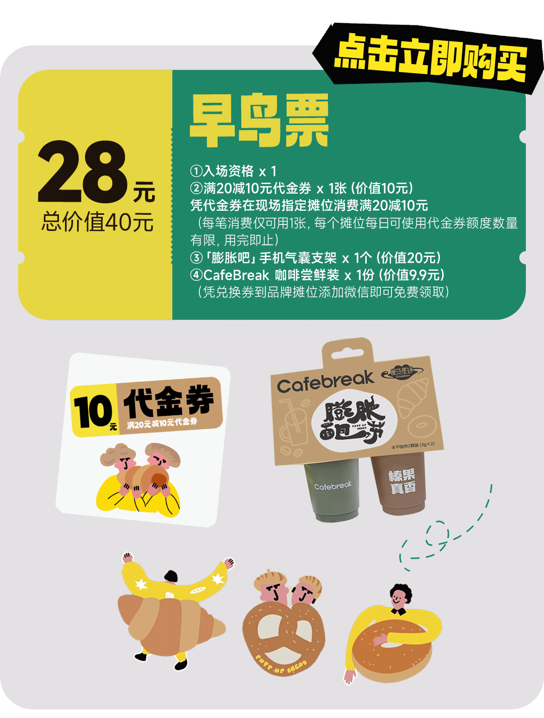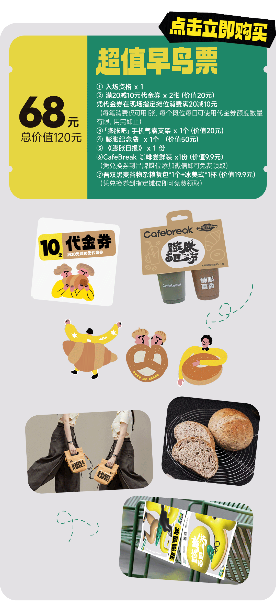 为了让面包星人们更愉快地「又食又拎」,膨胀面包节深圳站的门票升级啦!