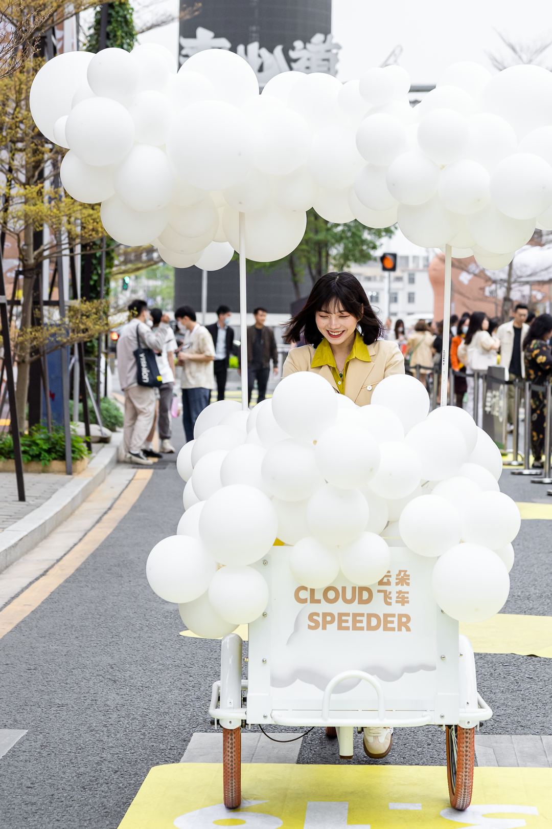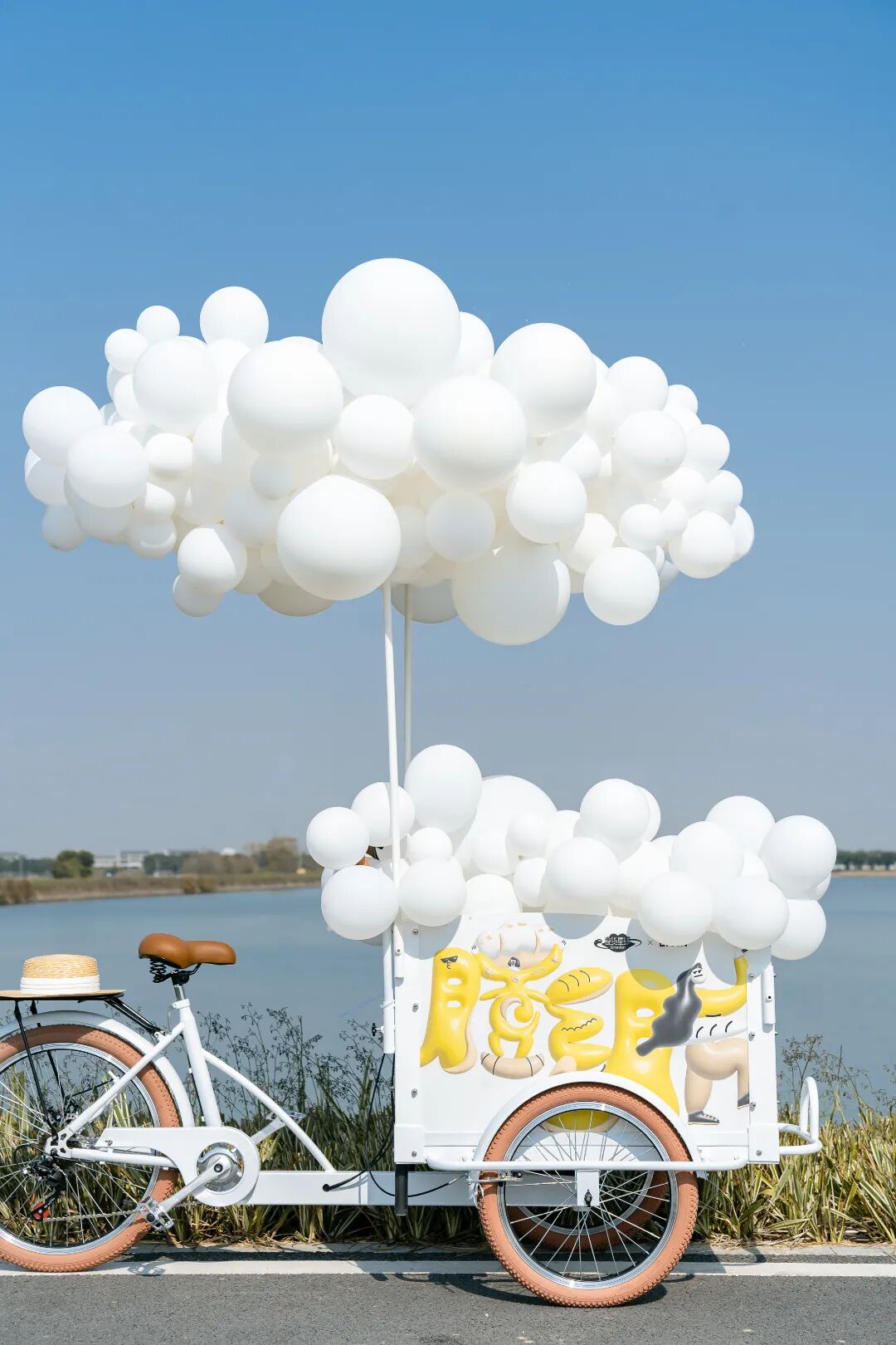 一辆载白色气球的云朵飞车将巡游全场,要是偶遇的话,上前去领取一个气球吧!它会让你的脚步和心情轻盈好几克。