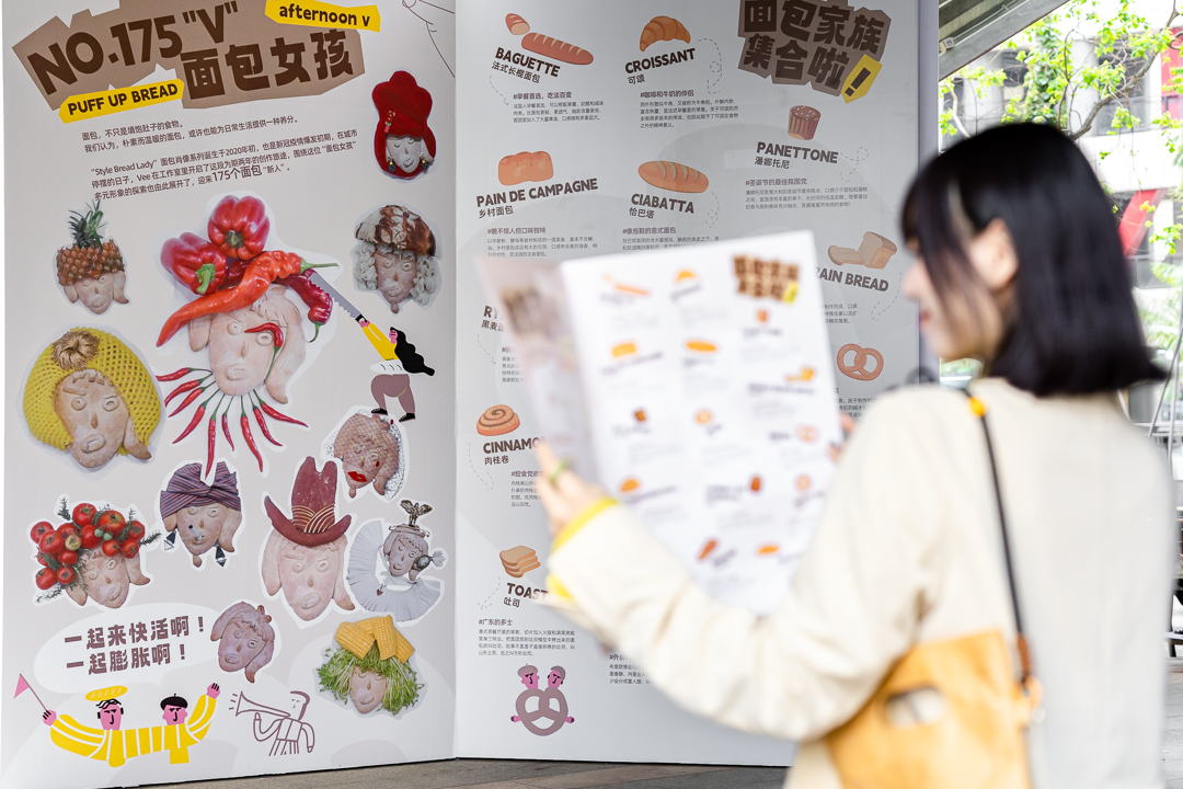 报刊亭里还有联动品牌们一起共创膨胀版的食纸,一起打卡N个膨胀的世界。不熟悉现场的面包店?看完展就会有心里有数。
