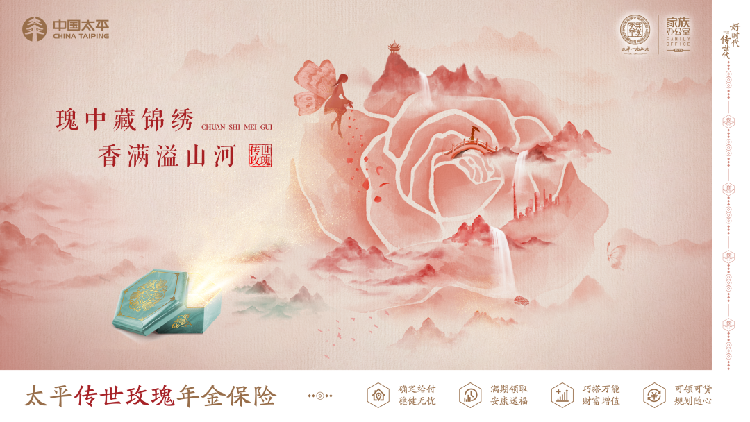 为精准匹配中国高净值家庭财富管理需求,太平1929家族办公室专属“传世”系列新产品——“太平传世玫瑰年金保险”也在本次仪式上正式发布。“太平传世玫瑰”针对女性高端客户量身设计,更加符合女性重视长远财务规划和资产配置的需求偏好,更加匹配女性在不确定性中追求提升“安全感”的特点,令高净值女性客户不仅拥有玫瑰的“缤纷色彩”,更能获得玫瑰的“持久芬芳”。