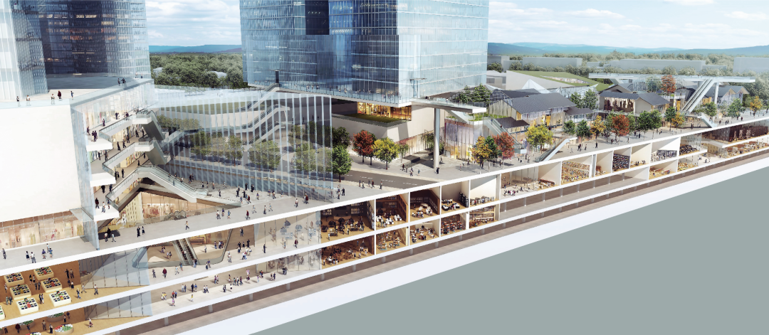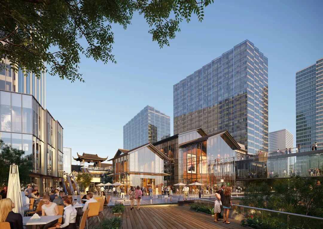 苏州华贸中心在这座占地约79万⽅的微城市内,由KPF、MVA、SWA、OVAL、ALT、安藤忠雄等国际一流著名设计团队操刀,涵盖国际超甲级写字楼、⾼端购物中⼼、园林商业街区、城市⼴场、艺术馆、紫芝园、⾼级服务公寓华贸·姑苏⾥以及国际酒店集群等多个社交生活场所,打造长三角尊荣生活新样貌。