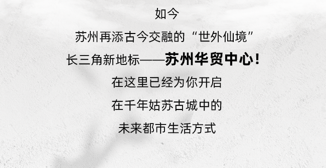 苏州华贸中心以匠心倾心打造,用优雅、经典,与苏州古城的诗意、清雅有机融合,为姑苏里业主打造了无限可能的未来生活方式!