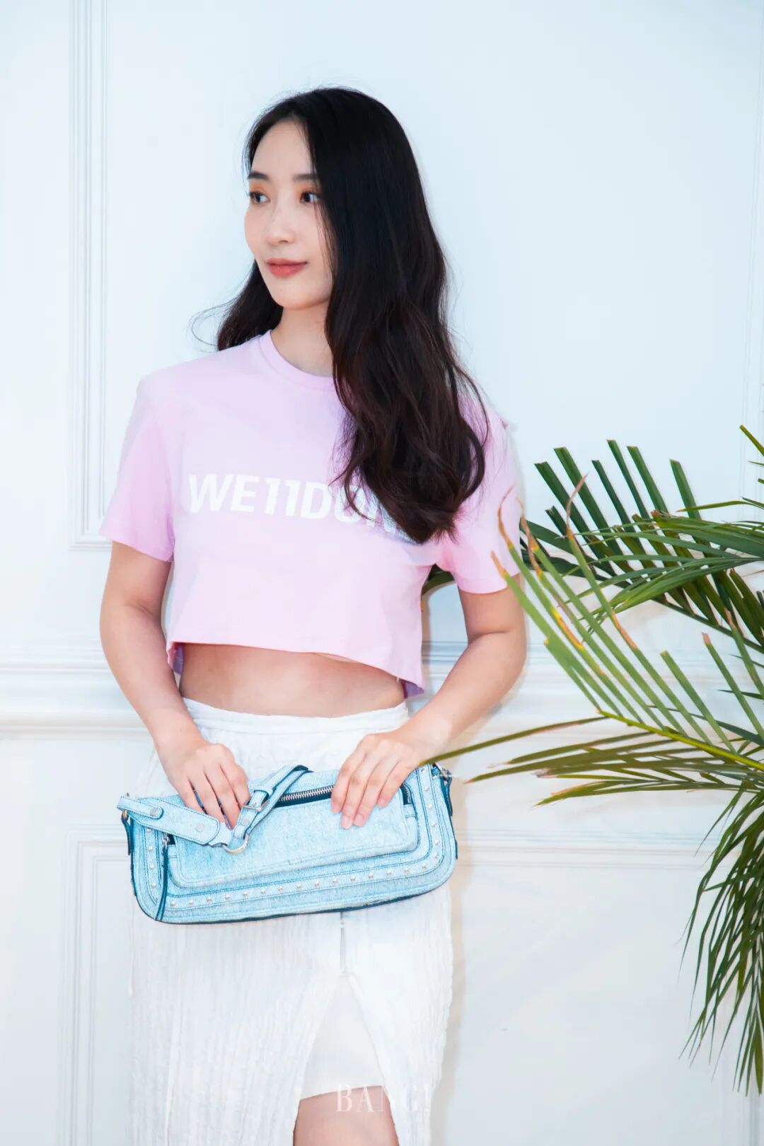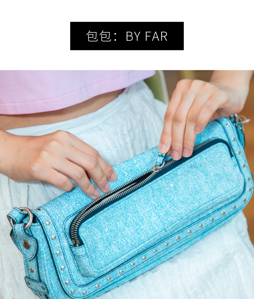 夏日辣妹派对,用火爆单品DIESEL上衣来加持,LVIR短裙搭配BY FAR鞋子,紧身上衣展示了完美曲线,自带酷感的短裙又恰到好处的展现了身材,随随便便打造了风靡时尚圈的“拽姐风”、“辣妹风”。