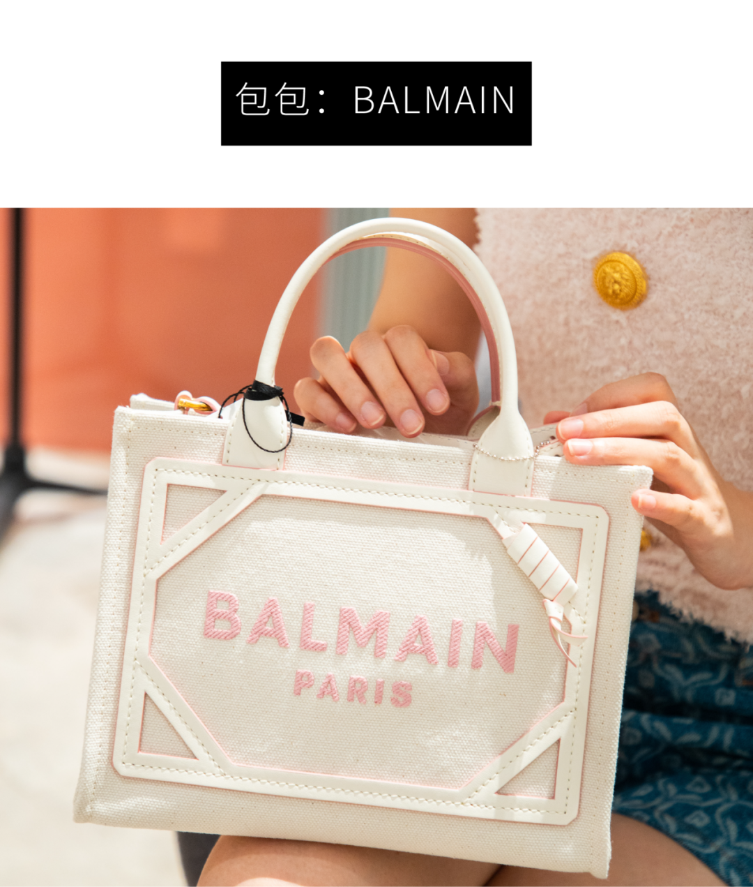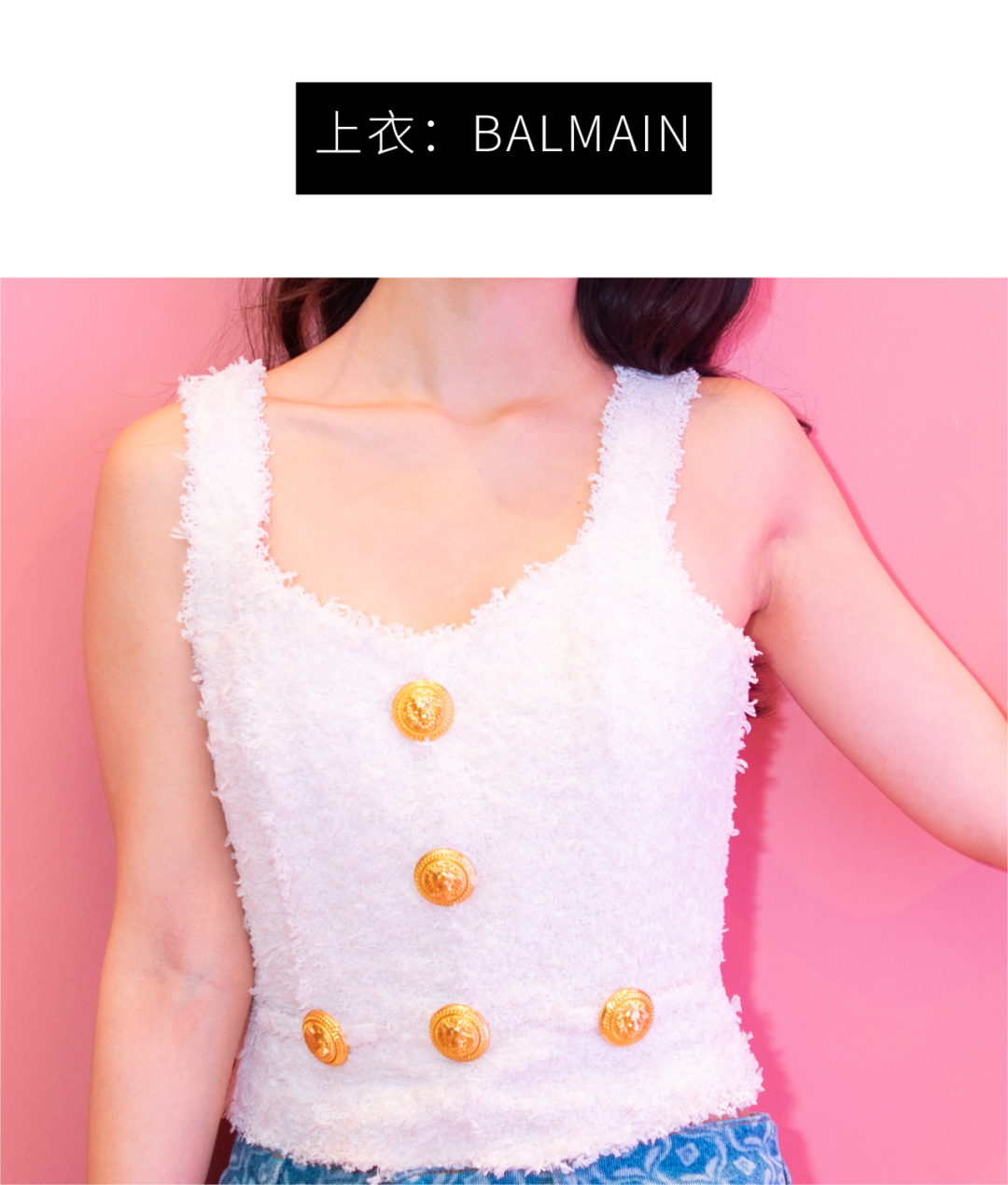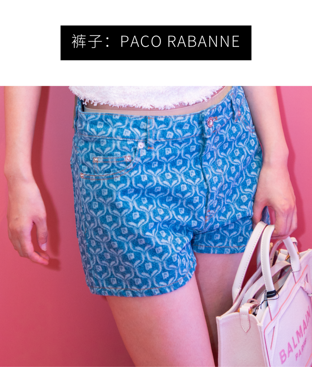 突然大火的富家千金风格可以说是高级与贵气的代名词,对服装的质感与剪裁要求很高。BALMAIN的这件上衣采用高级挺阔的面料,可以修饰身形与体态,糅合了女性的娇柔与高雅。PACO RABANNE短裤BALMAIN包包,整套造型高级又不失俏皮。