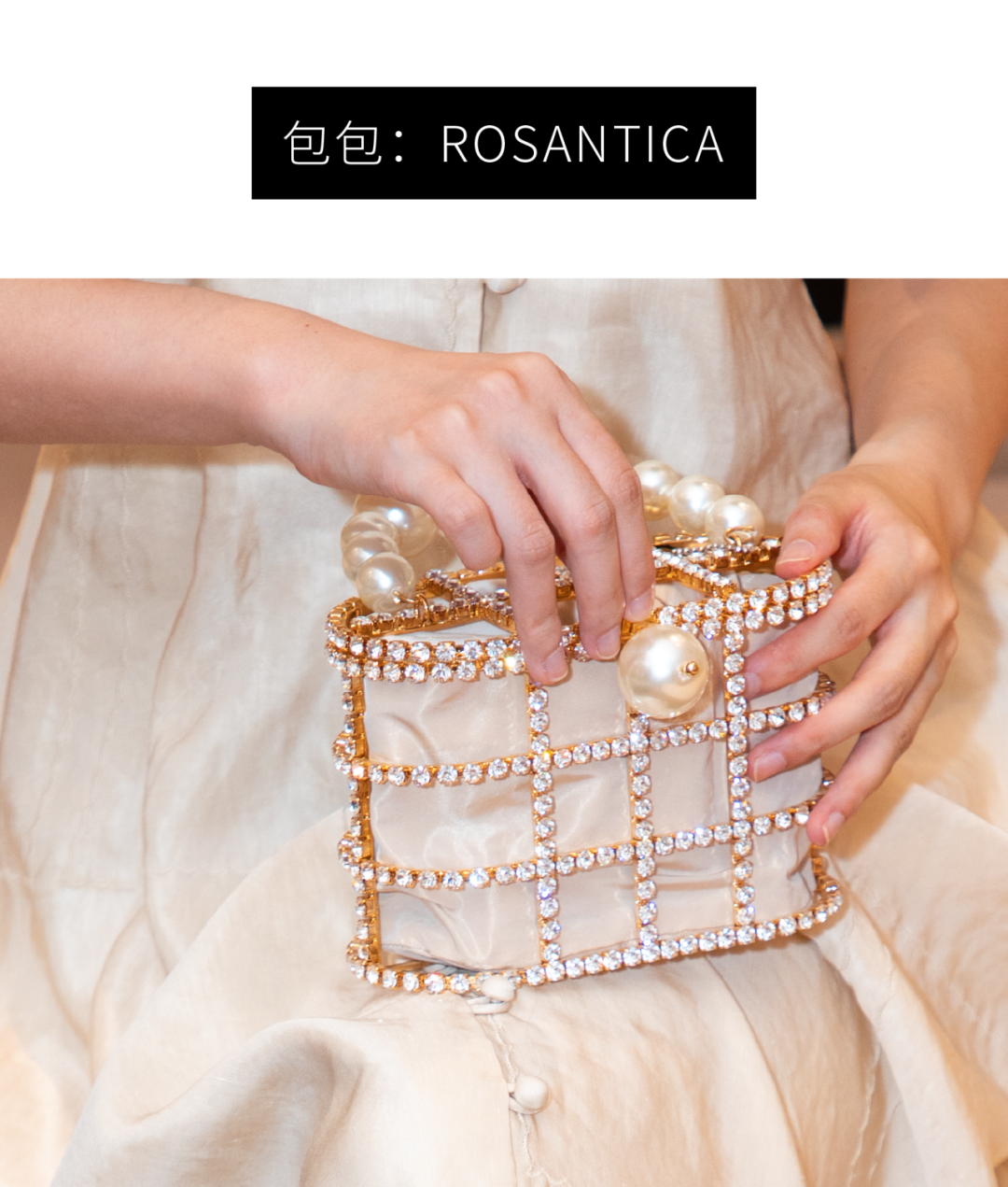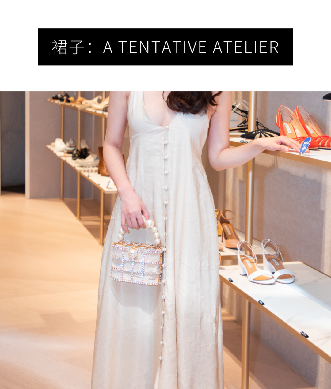 海边度假,夏日去海边玩,少不了一条好看又好穿的裙子,A TENTATIVE ATELIER该品牌旨在探索手工艺品的艺术元素以及服装上新颖的形式和轮廓,暖调素雅的颜色,再加上blingbling的ROSANTICA小包包。