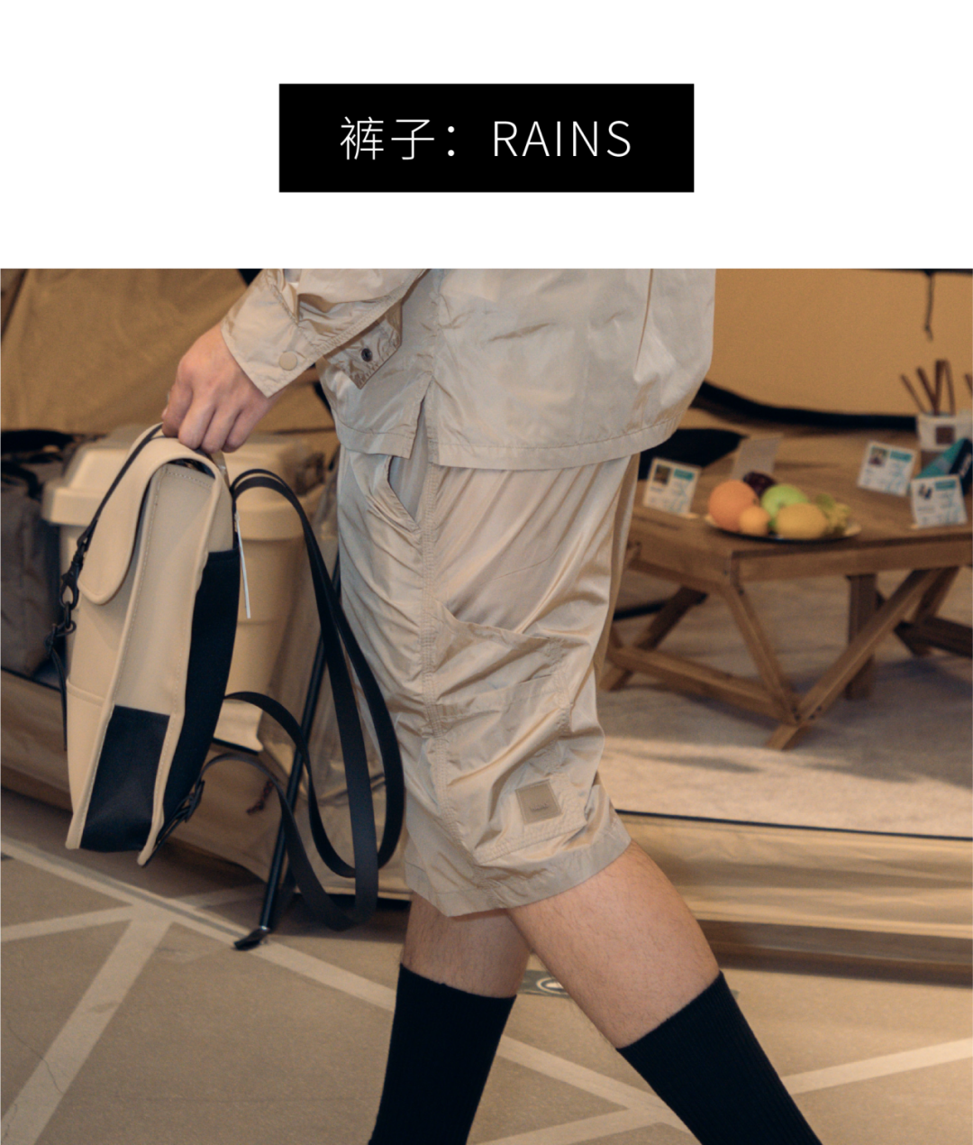 那这套OOTD上衣和裤子来源于RAINS以大地色系为主,搭配RAF SIMONS鞋子,随性的搭配兼具都市实用性和户外功能性,让你自在出行,随时carry全场~