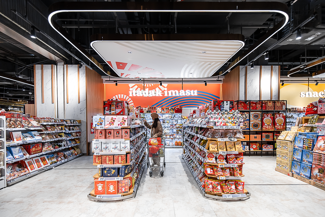 日式专区尤其受女生喜欢,墙面和头顶的方形石膏板都专门画上了日式风格图绘,货架上则摆着各种来自日本的零食糖果,一不留神就能装走一大袋。![]()