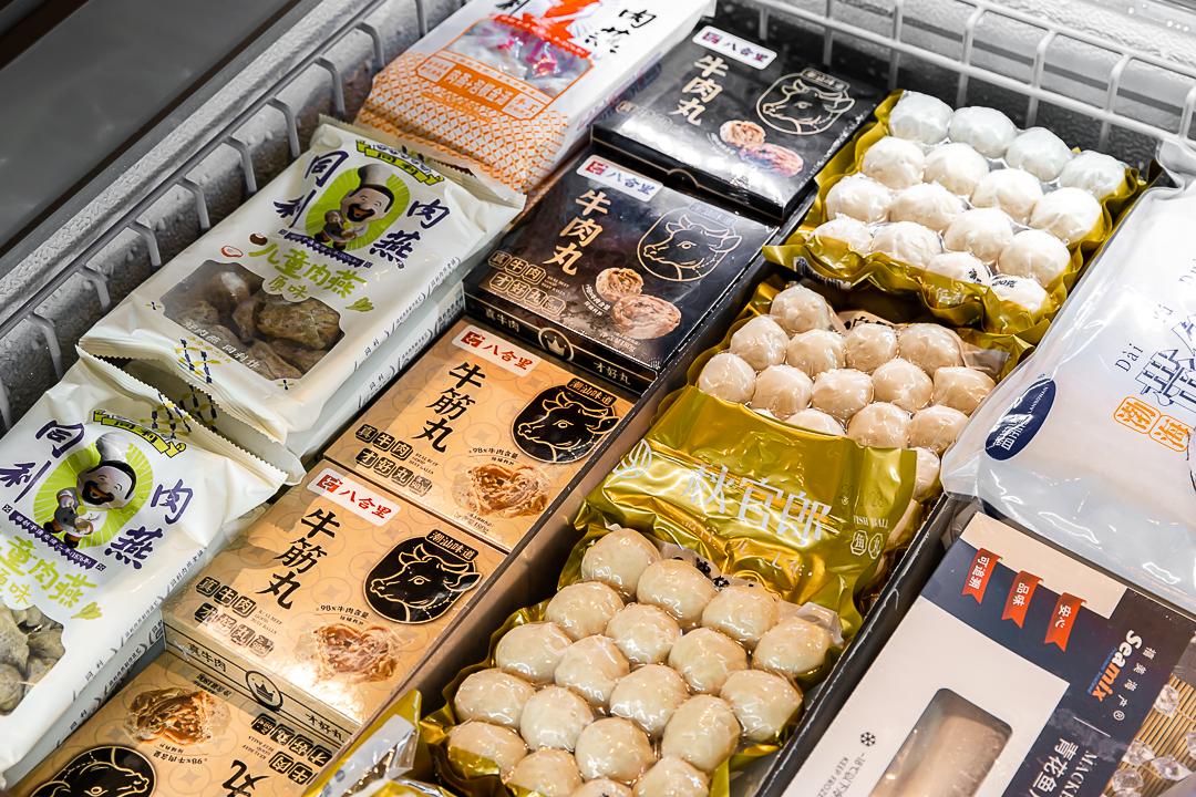 除此之外,水产区还新增了海产干货专柜、来自泰国和沙特的虾品、皇家格陵兰比目鱼等。想买点鱼丸、虾丸回去打边炉,也可以试试新引进的百年老字号「秋官郎」和「同利」品牌。![]()