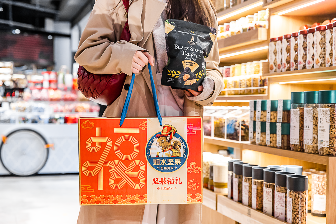 黑松露帕玛森芝士味的「AromaTruffle艾洛玛薯片」很特别,融合意大利Spoleto农场黑松露和帕玛森奶酪两种风味,加上香脆口感,回味无穷。送礼可以再搭配一个「如水坚果福礼贵族礼盒」,过年串门年货轻松搞定。![]()