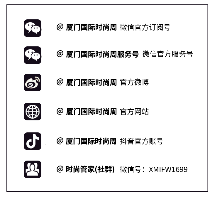 文章内容来源于公众号:厦门国际时尚周,点此可查看原文,内容版权归相关企业所有,本网站仅供交流学习。若涉及版权问题或存在侵权情况,请及时与我们联系,我们将第一时间进行删除处理。