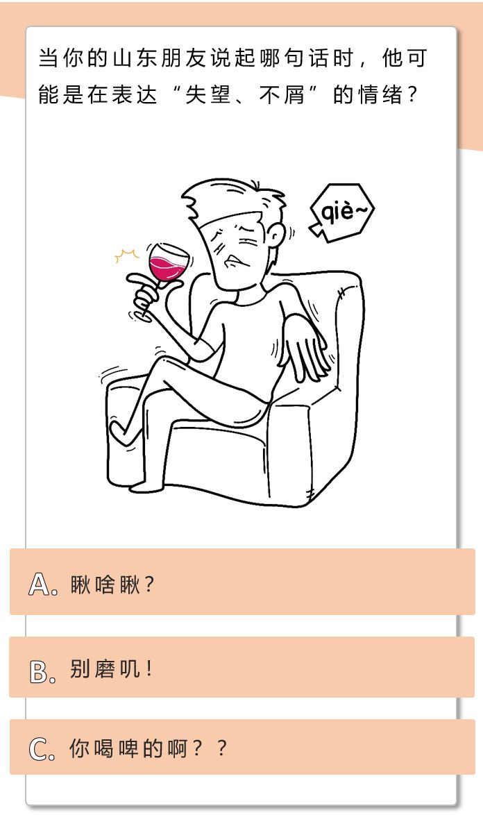 解析:山东人能喝酒全国都很出名,当山东人说“你喝啤的啊?”可能表面上看不出什么,心里却是真失望。