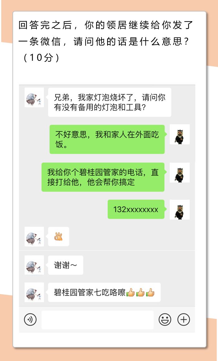 解析:小到换灯泡、代收包裹,大到房屋装修、租售托管,只要一通电话,碧桂园管家都能及时为业主提供细心便捷的服务,真正做到24小时待命,365天恭候。