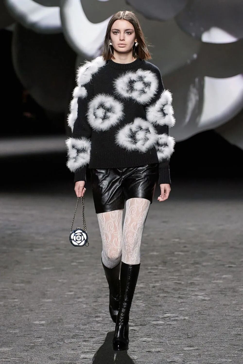 该系列以深色为主色调,突出了一种神秘和强大的气质。同时也加入了一些亮色和图案的点缀,形成了一种多样和混搭的风格。在华伦天奴此次的2023秋冬系列中,创意总监Pierpaolo Piccioli想要通过这场时装秀探索“黑领带”的不同形式和表达方式。浪漫、脱离背景的领带成为每款造型反复出现的主题,以打破性别的壁垒。服装以黑色和白色为主色调,突出了纯粹和简约的美感。以轻盈和流畅的材质为主,呈现了一种优雅和灵动的效果。纪梵希这次展示了一系列结合了经典与现代的服装,如西服外套、皮草大衣、银色连裙和黑色皮革裤。极简的白色场地与设计形成强烈视觉反差,常见垫肩廓形在捏折修饰下绽放新的生机,呈现垂坠感和具有建筑感弧度。纪梵希创意总监Matthew M. Williams想要通过这场时装秀表达他对巴黎文化和历史的敬意,以及他对未来的信心和期待。路易威登2023-2024秋冬女装系列的配乐由法国艺术家Woodkid现场表演,该系列展现了一种超越时间和空间的风格 。服装以纯色为主,搭配中性色,并用腰带、箱包等配饰点缀,呈现了一种优雅又华丽的效果。该系列服装涵盖有特点的短袖、低领、紧身设计,以重量感和立体感的材质,展现了一种性感和自信的态度,呈现了一种坚固和结构化的效果。普拉达2023秋冬女装系列以精湛工艺和创新技术来展示品牌对面料的热爱和专注。该系列的服装以深色为主色调,运用一些轻盈和流畅的材质,如真丝、雪纺和羽毛等,形成了一种柔美和动感的效果。普拉达2023秋冬系列以干净利落的设计,来传递简约也可以很亮眼的风格理念。香奈儿在巴黎举行了一场致敬香奈儿经典标志——山茶花为主题的2023秋冬时装秀。秀场展示了一系列充满优雅、浪漫和女性力量的服装,同时兼具了前卫元素与经典设计。香奈儿的创意总监VirginieViard想要通过这场时装秀,向那些曾经在巴黎生活过的女性致敬,如CocoChanel、Gabrielle Dorziatf Romy Schneider等知名女性。