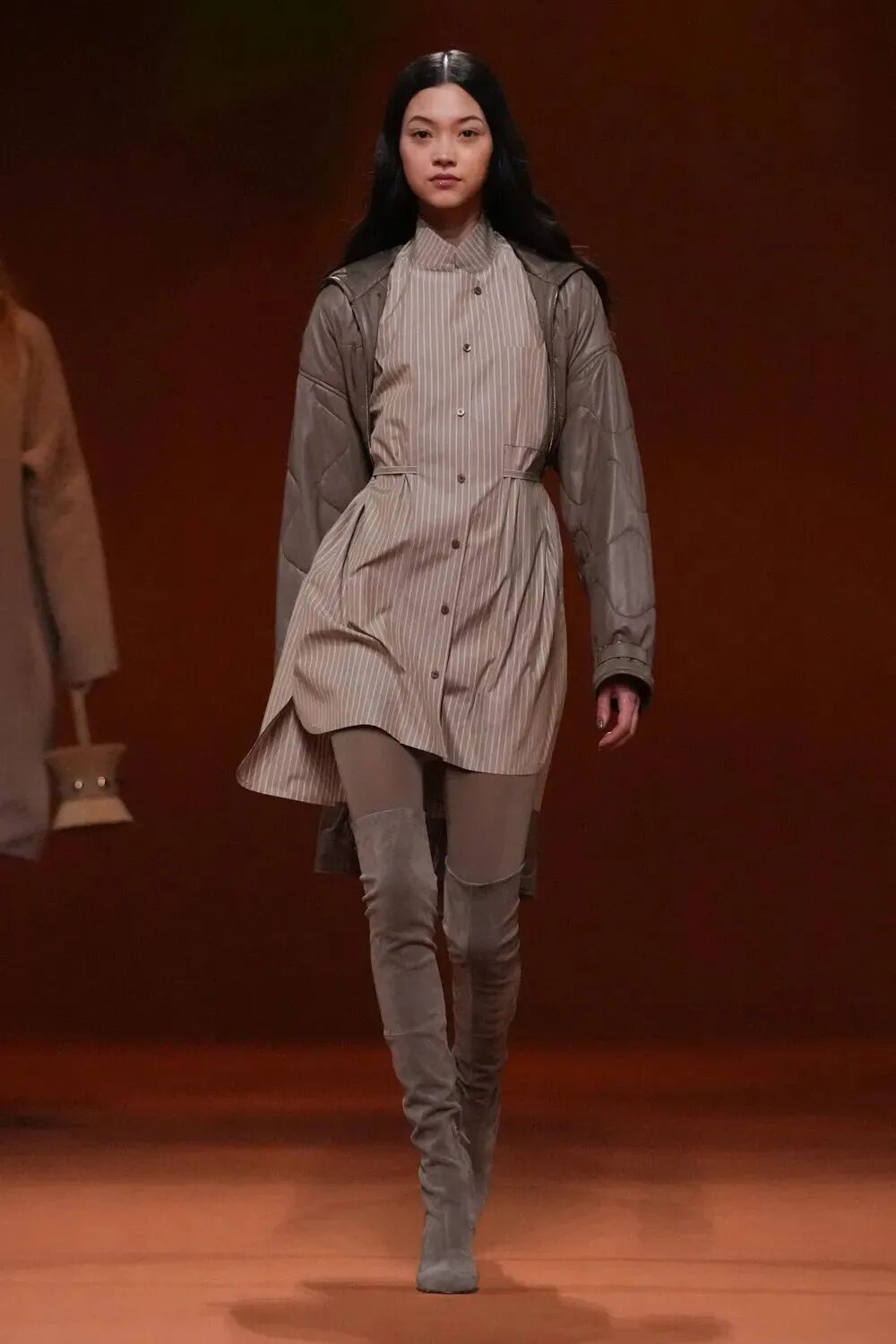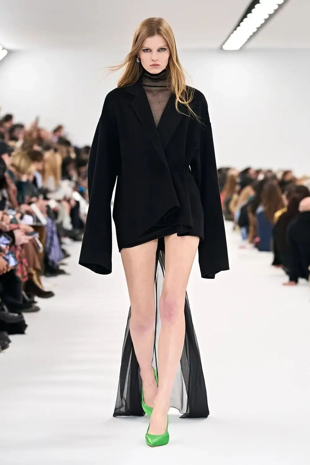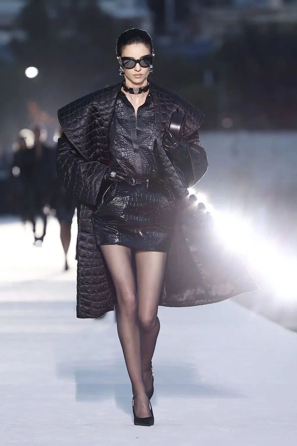 爱马仕Hermes在2023秋冬巴黎时装周上展示了一系列以“单色”为主题的服装。该系列由品牌的创意总监 Nadège Vanhée-Cybulski 创作,她想要通过这场时装秀呈现纯粹和精致的美学,以及一种对材质和工艺的尊重。系列配色以冬日色调为主,突出了一种沉稳和优雅的气质。同时也有一些混合色和渐变色的运用,增添了些许活力和趣味。服装以长袖、高领、宽松和层叠为特点,营造了一种舒适和温暖的感觉。同时也适当融入开衩和腰带等元素,展现了女性性感和自信的态度。巴黎世家在卢浮宫的地下商场Carrousel du Louvre举行了2023秋冬时装秀,展示了一系列具有科幻感和前卫感的服装。该品牌的创意总监Demna Gvasalia表示,他想要通过这场时装秀展现他对未来世界的想象,以及他对时尚界的挑战和创新。系列延续巴黎世家标志性风格,用不寻常的元素来创造美感、戏剧性和不对称性,继续挑战传统美学标准。迪奥在巴黎杜乐丽花园发布了一场以"花园”为主题的时装秀,展示了一系列灵感来源自然界的服装如花卉图案、绿色调和草编细节。迪奥创意总监Maria Grazia Chiuri想要通过这场时装秀,探讨人与自然之间的关系,以及女性与自然之间的联系。勾勒出的千变万化的女性形象,为塑造未来新一代的女性提供了情感路径。这个系列是反传统女性气质的标志,叛逆、既坚强又脆弱。斑驳的织物与金属线交织在一起,为织物注入生命,使其具有延展性,消除轮廓以获得抽象效果。范思哲VERSACE在2023秋冬巴黎时装周上展示了“意大利式”优雅。范思哲创意总监Donatella Versace表示,她想要通过这场时装秀展现一种性感和自由的女性形象,以及一种对材质和工艺的创新和挑战。