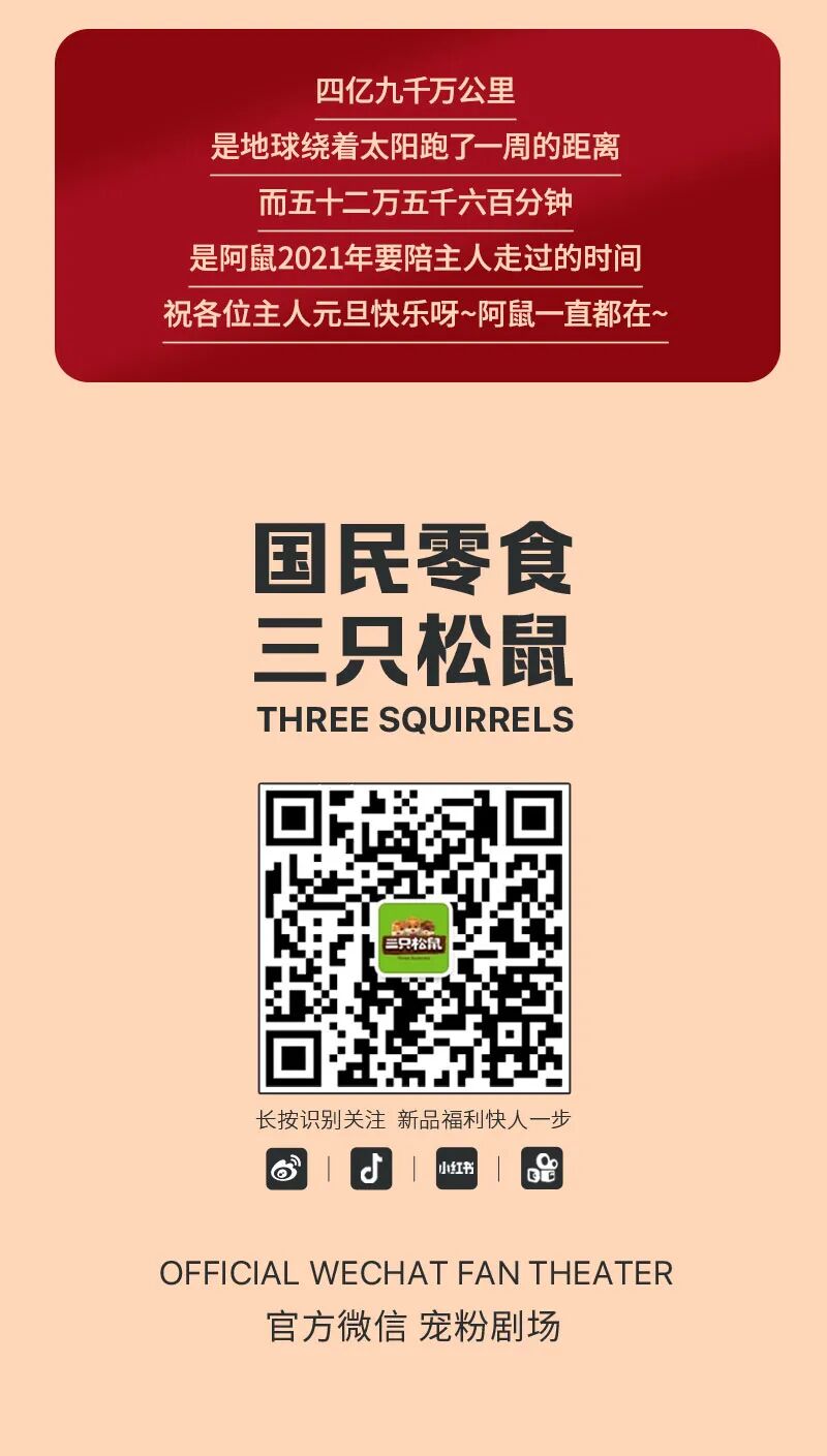 文章内容来源于公众号:三只松鼠,点此可查看原文,内容版权归相关企业所有,本网站仅供交流学习。若涉及版权问题或存在侵权情况,请及时与我们联系,我们将第一时间进行删除处理。