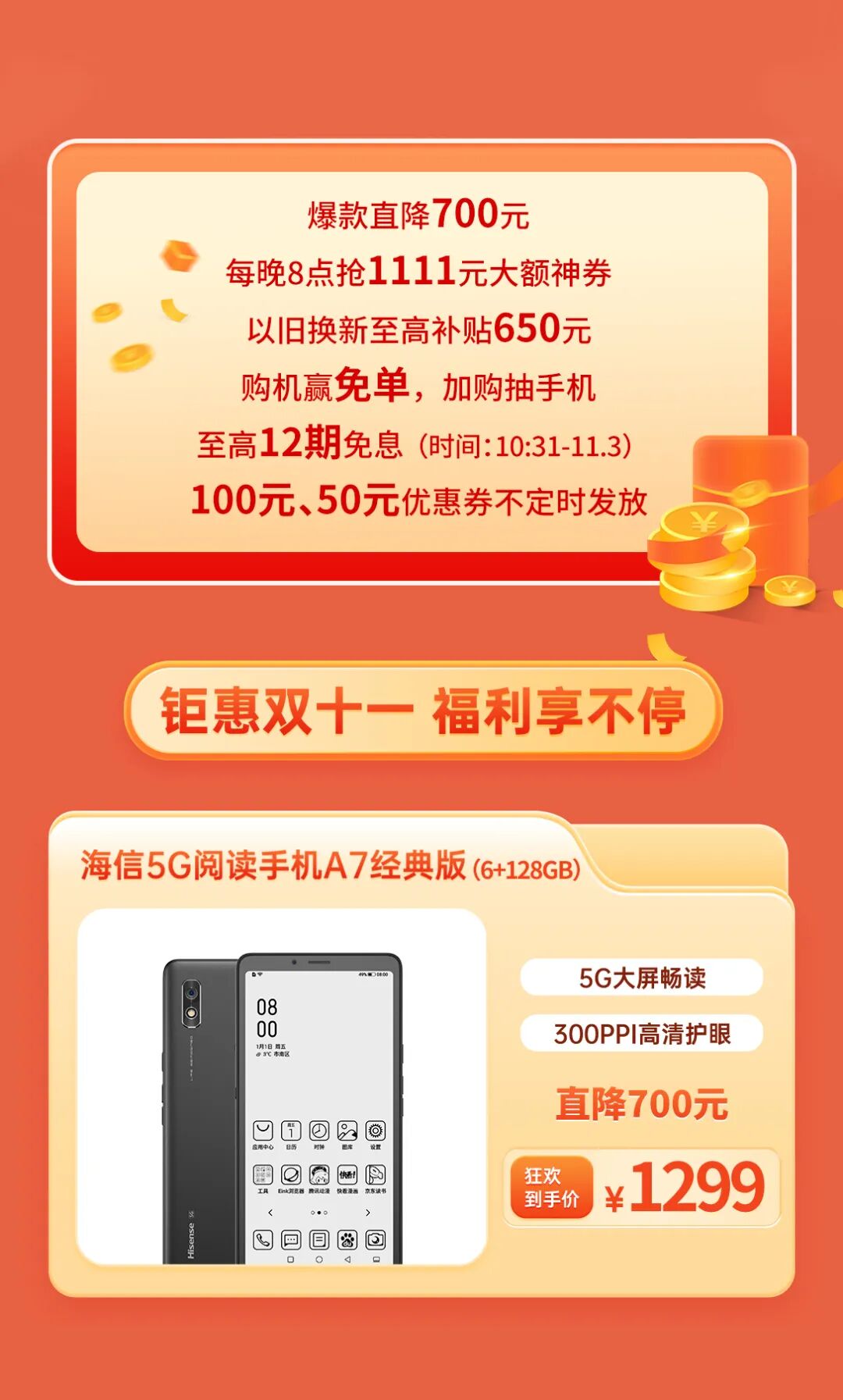海信护眼爆款墨水屏阅读手机A7直降700元,现在入手仅需1299元。