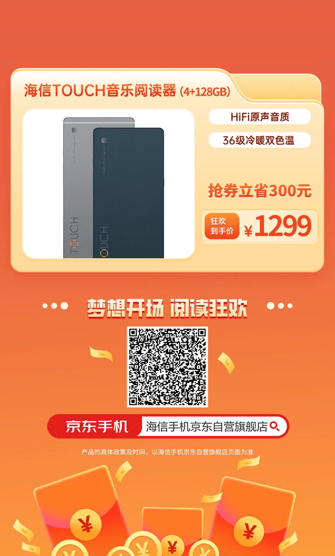 自2017年开始,海信陆续推出了双屏系列,经典黑白墨水屏、彩墨屏阅读手机系列、5G阅读手机系列及TOUCH音乐阅读器等多个产品线,开启全民护眼沉浸式阅读新时代。