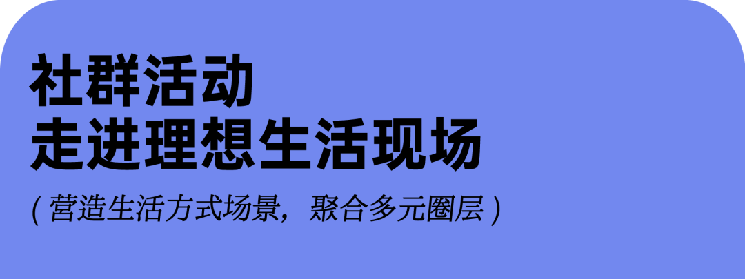 为了能够关注到不同圈层的新青年,打造他们得以相互交流的有机城市载体,所发起的4场不同类别的社群活动,用好玩有趣的生活方式场景,聚合具有相同偏好的「同温层」;用丰富体验重塑商业中心的文化属性,联结创意内容生产者与享用者,邀请大家一起走进理想生活现场。活动现场将会有优秀的社群实践先驱者和社群活动达人现身,带领大家一同打破原有界限。