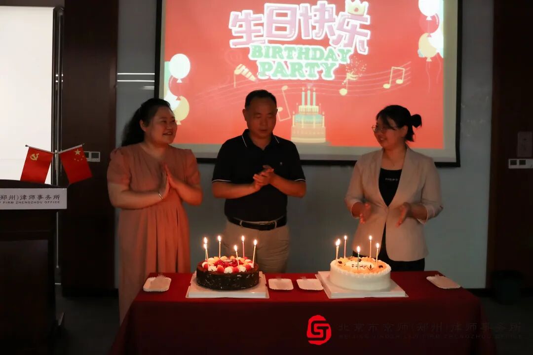 在欢快气氛下,在京师家人们欢乐的笑声中,全场一同唱起了生日快乐歌,寿星们一起切蛋糕、许心愿、吹蜡烛。他们对于律所组织的生日会表示感动,感谢律所为大家举办生日会。每一场迎新生日会,我们都希望将点滴幸福传递给每个人,让大家可以感受温暖与祝福。