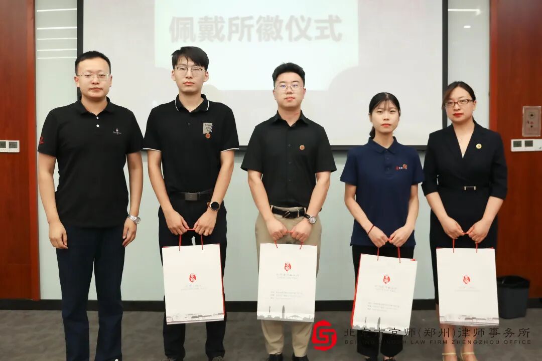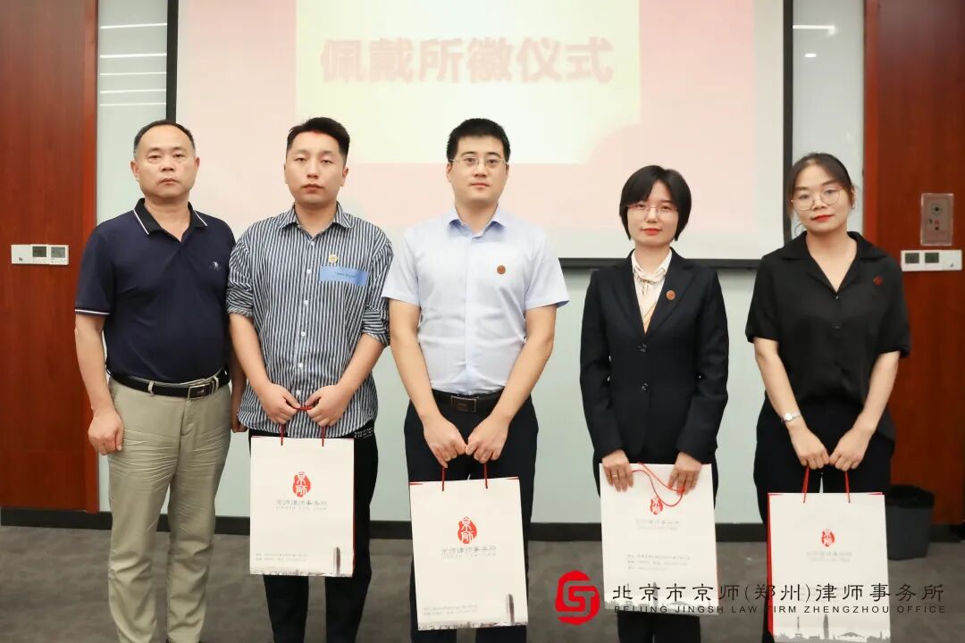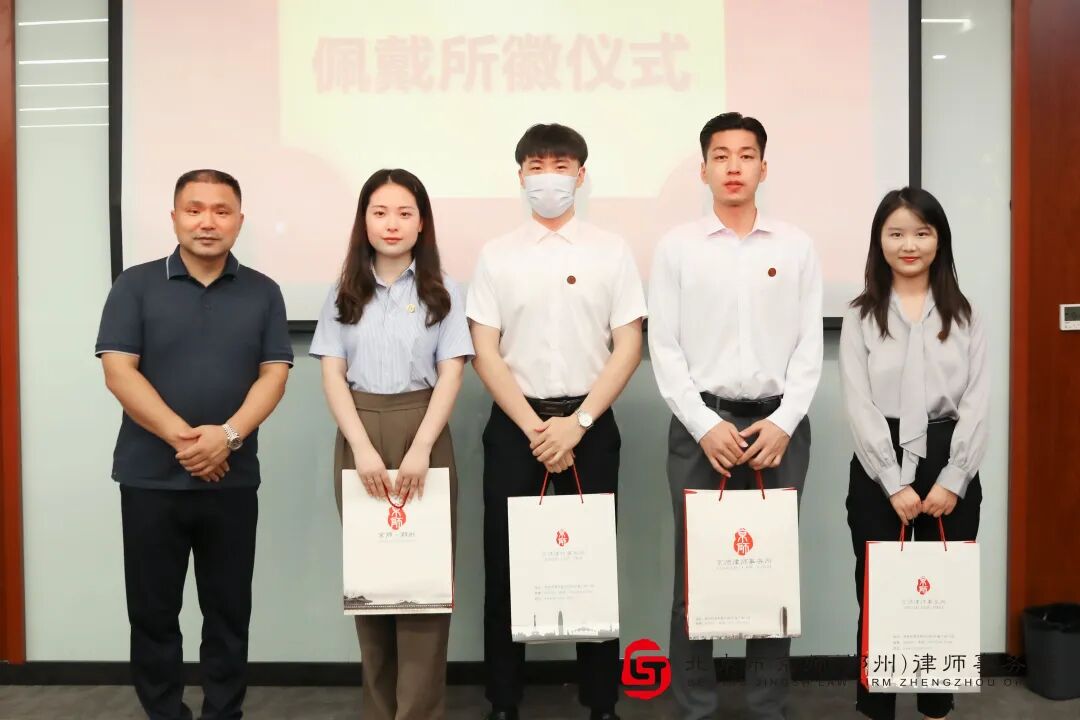 怀揣着对未来的期许,京师郑州分所文化品牌工作委员会主任刘兆庆、执业规范工作委员会主任秦明、律师研究院院长张吉祥向新人一一进行了授徽并发放新人大礼包。