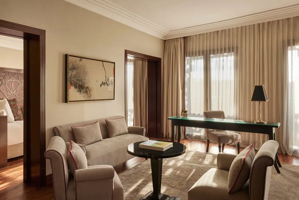 酒店套房环绕式的露台坐享阿特拉斯山景和库图比亚清真寺美景,圆形泳池甲板、餐厅、酒吧和全景露台也都是极佳的观景位。其中,特色餐厅主打海滩俱乐部风格,提供传统日料、摩洛哥本土特色菜肴和各式鸡尾酒;你也可以在泳池或是珍珠水疗中心放松身心,或是去酒店的精品店购买奢侈品LV和一些设计师作品。