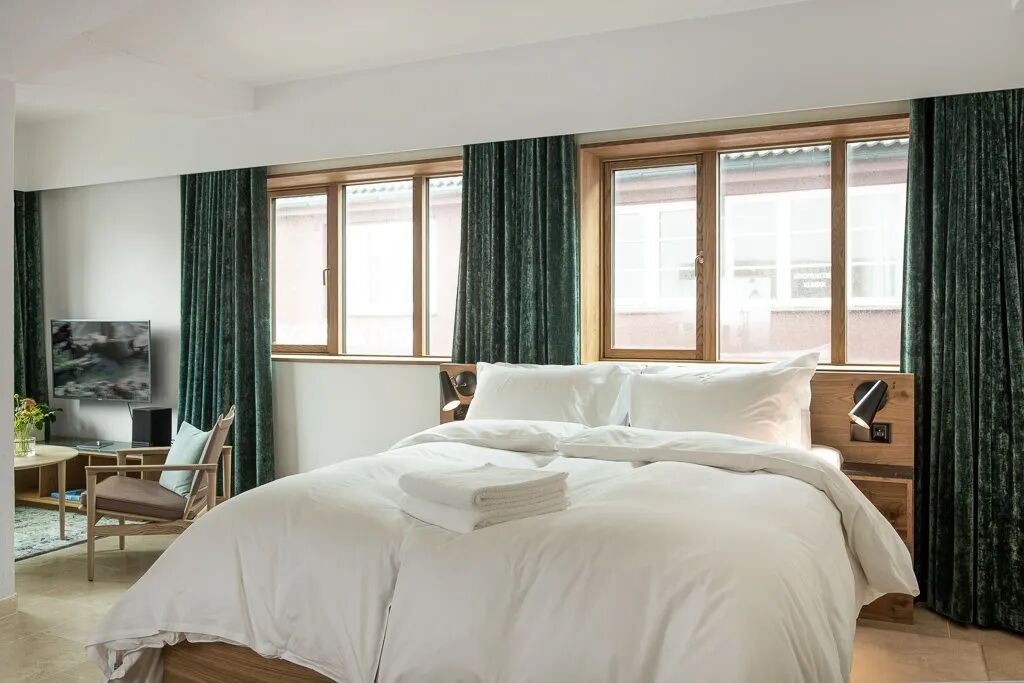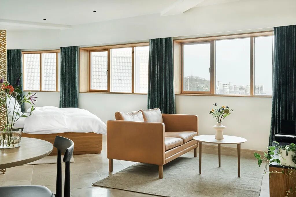 室内的北欧风设计一如探索这座城市的基调,客房和套房主打清新的白色调搭配木制装饰,并设有私人厨房提供当地酿造的咖啡和餐前葡萄酒。尤其推荐顶楼的双卧室艾勒特公寓,可俯瞰城市和海港的壮丽全景。