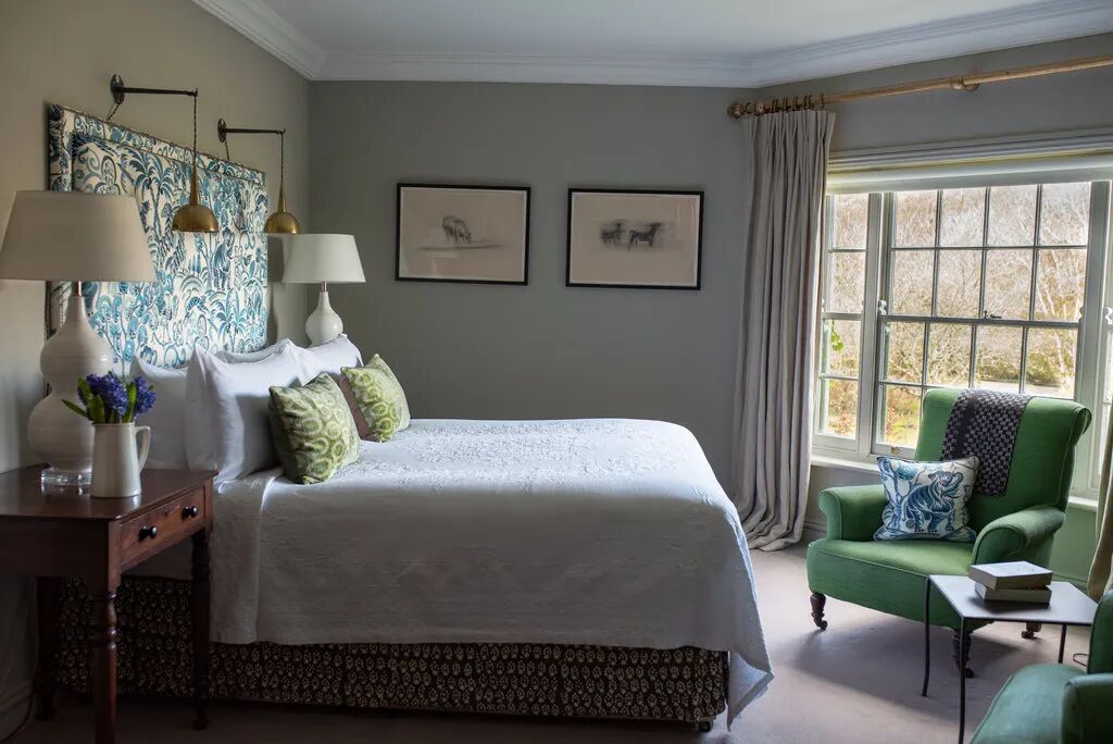 每间客房都有绿色色调、精心挑选的家具和鲜花点缀,打开窗户还可以欣赏到庭院花园、荒野大西洋路或布伦峰的景色。闲暇时,你可以围坐在客厅炉火旁享用下午茶或按摩,屡获殊荣的餐厅提供时令传统美食,夜幕后不妨在软木塞酒吧喝一杯睡前酒。