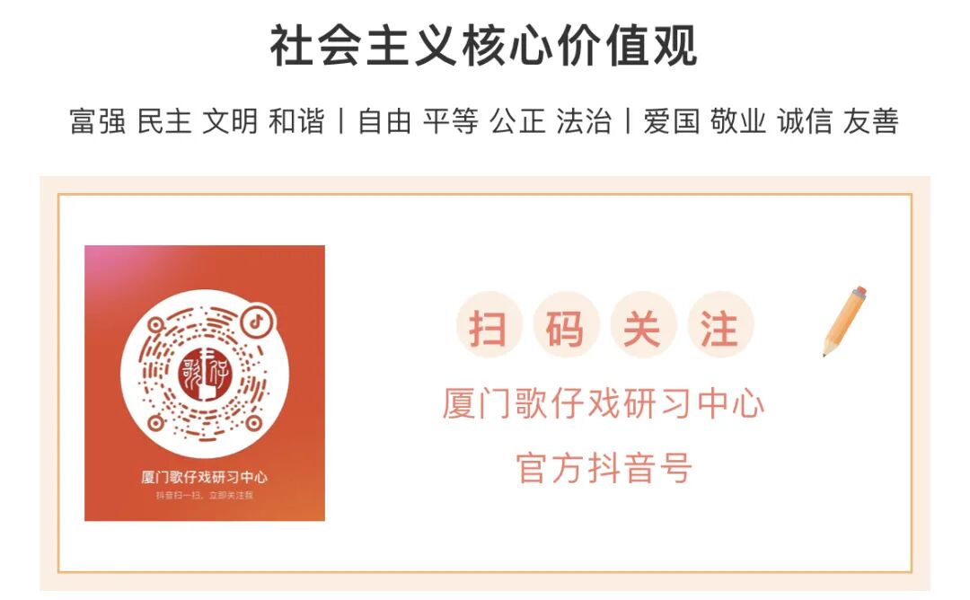 厦门歌仔戏研习中心共10余名党员、共青团员参加“凝心聚力跟党走、踔厉奋发建新功”七一主题党日活动,通过开展“重温入党誓词、点燃革命之火、青春之声•红歌祝福、“与党旗同框”、聆听老战士讲述革命往事汲取精神力量、集中学习研讨交流、参观爱国主义教育基地感悟红色历史文化、心愿树下表达对党的祝福”等系列活动,表达对伟大祖国、伟大党的热情歌颂以及对今天美好生活的无限赞美。