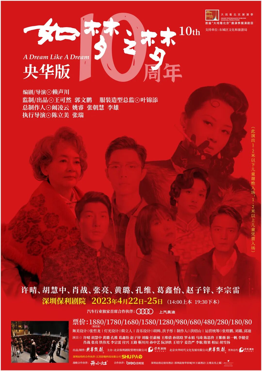 《如梦之梦》首创环绕形式的剧场,演出长达八小时,舞台包含八个方位,三个楼层,三十多名演员,三百多套服装,穿越时间(民国初年、现代)与空间(台北、巴黎、上海、北京、诺曼底)演绎篇章,观众坐在舞台的中央区,感受着精彩的呈现。