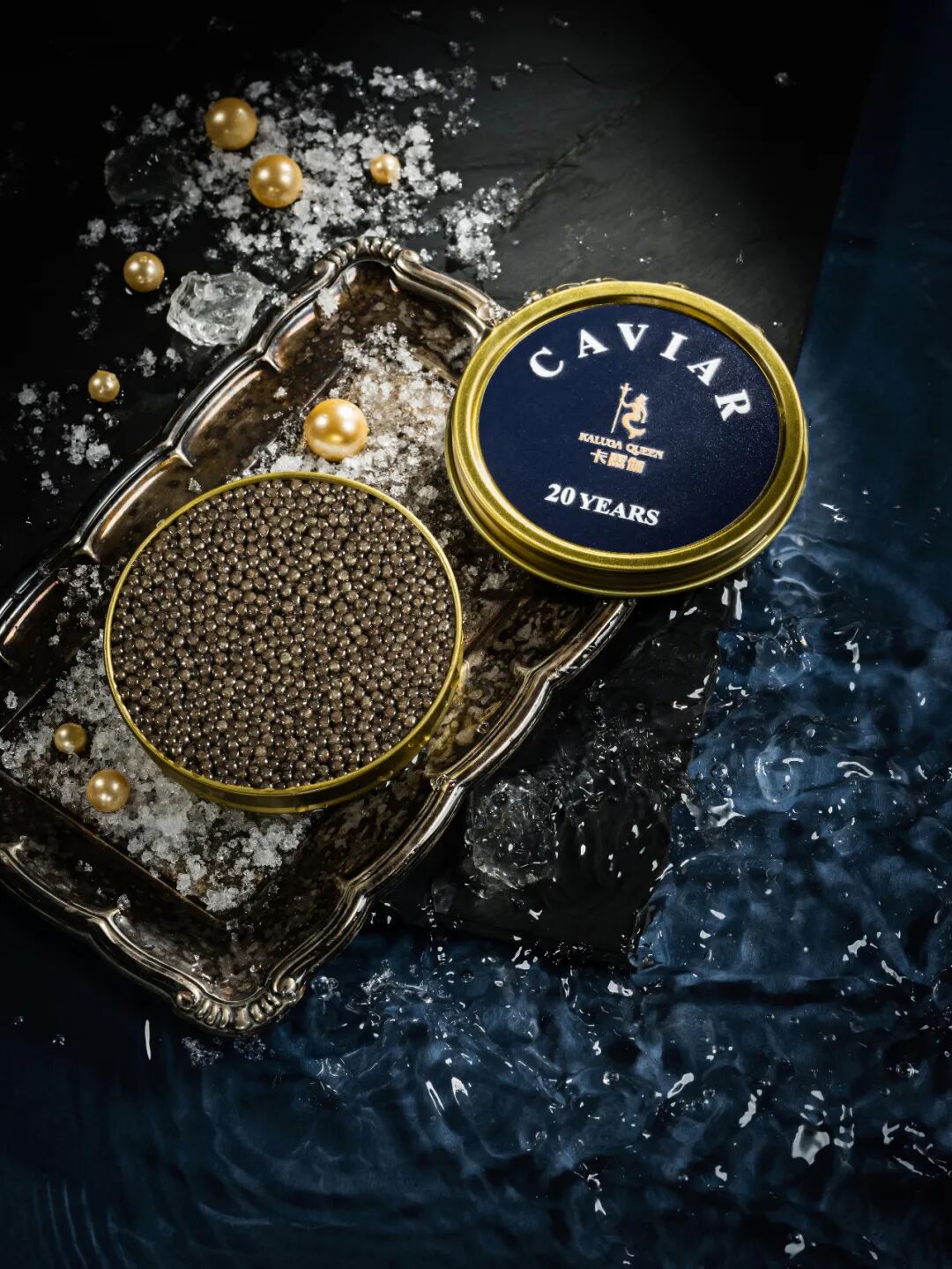 皇冠加持尽显尊贵奢华、神圣三叉戟展露海洋风范,以古老的人鱼传说为载,承托悠长浩瀚的鱼子酱文化——Kaluga Queen卡露伽鱼子酱,追随海洋原始足迹,缔造至臻馥郁醇香。