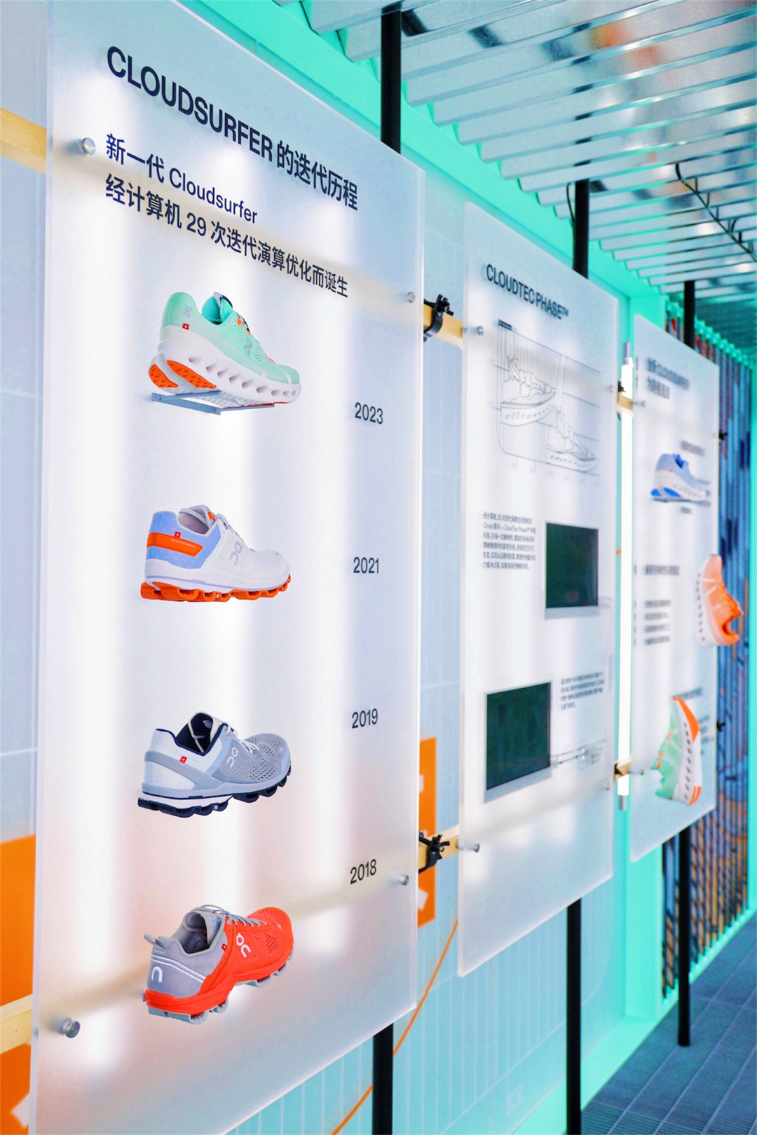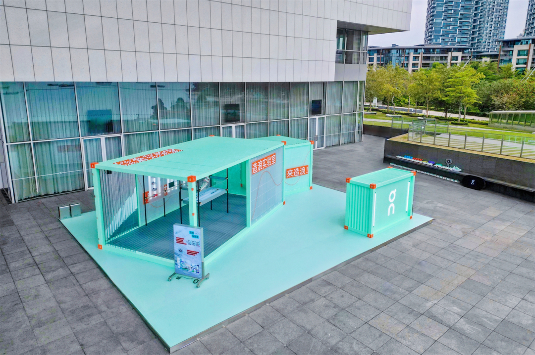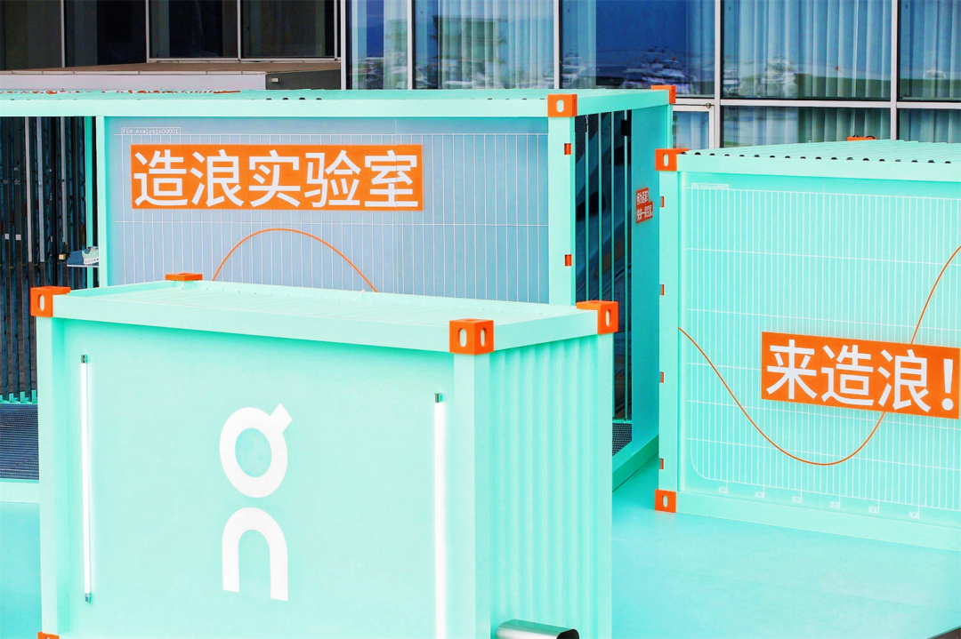 此次On「造浪实验室」设计灵感取自集装箱,以简洁、实用的现代审美,展示On作为瑞士运动品牌兼具功能性、设计感和可持续性的工程美学。展厅内,多媒体互动装置以前卫形式呈现海浪汹涌动态,用直观的视觉化表达呈现浪潮涌动,为跑者们带来丰富有趣的互动体验。