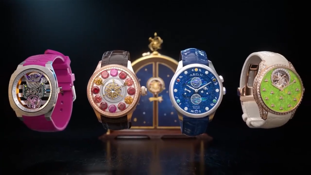 全新广告形象大片在Gucci宇宙中开启一场梦幻的太空之旅,呈现五大标志性腕表系列,陀飞轮设计匠心演绎品牌传承,将经典元素、前卫艺术和闪耀宝石等多重元素巧妙融合,尽显当代精致考究的制表工艺。